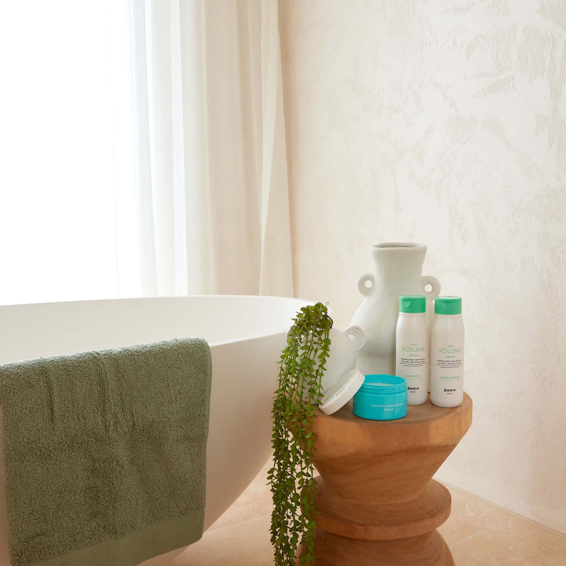 Juuce Volume Shampoo thickens fine, limp hair to boost volume, body and shine while strengthening and protecting.