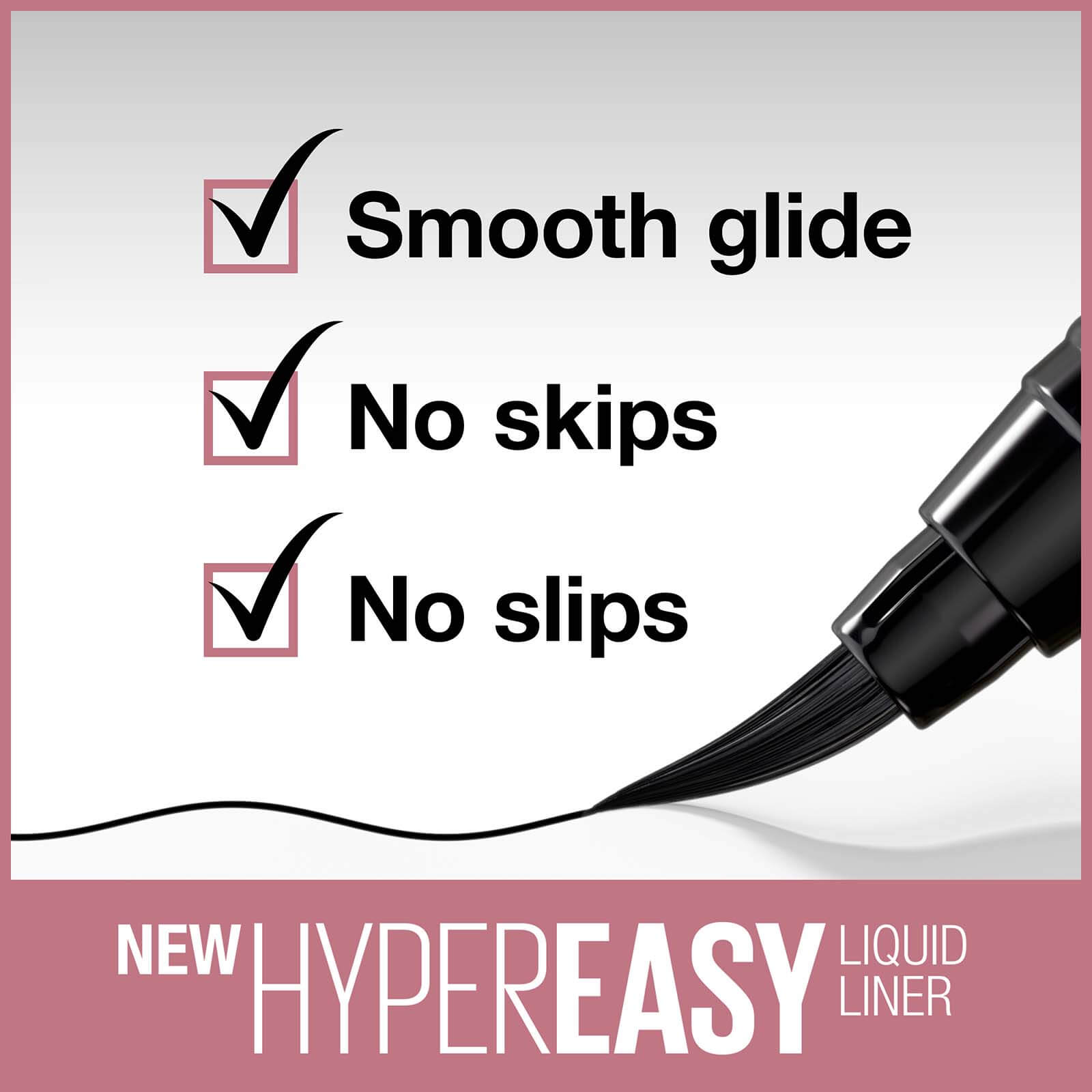 Liquid Liner goes Hyper Easy. Its revolutionary flex tip delivers the smoothest glide with no skips for easy eyeliner application. The custom hexagonal grip gives optimal control for easy, stable application. It lasts up to 24 hours with intense colour that doesn't smudge.