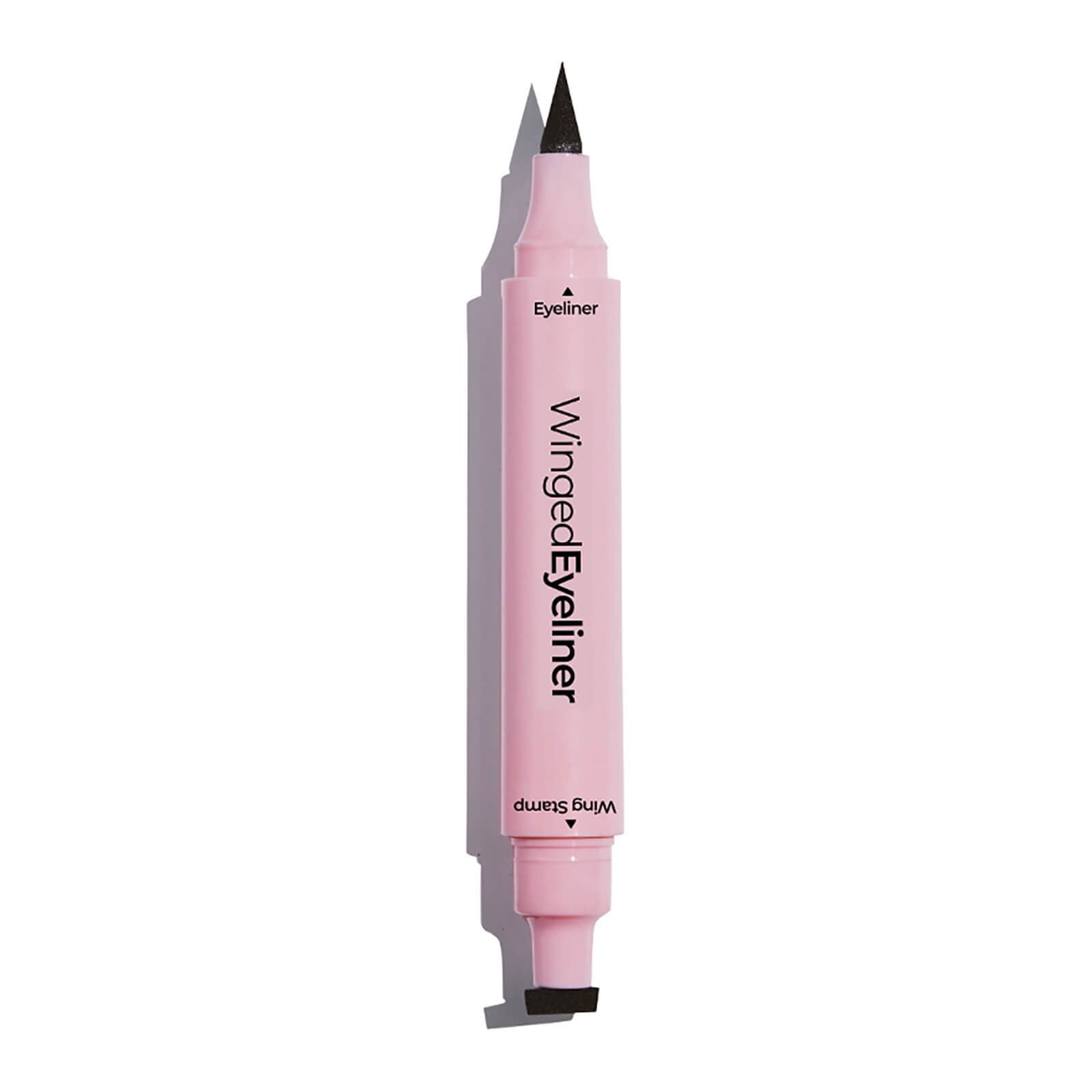 WINGED EYELINER STAMP & LIQUID LINER DUO is an innovative dual ended tool designed to create perfect symmetry and intense colour with each application. The felt Eyeliner Stamp delivers the perfect feline flick with minimal effort, while the Liquid Liner creates a dramatic, high definition finish.
