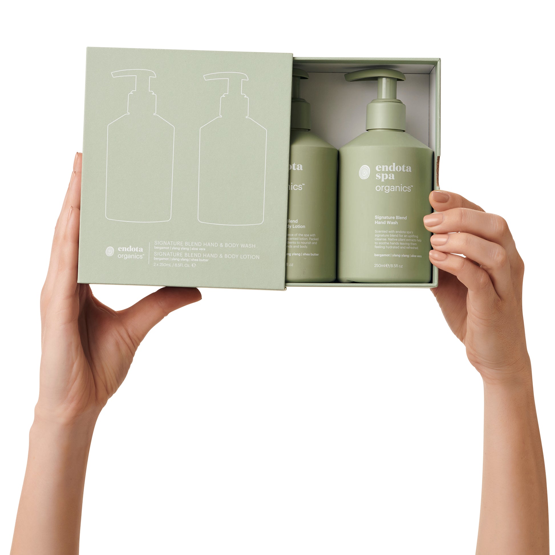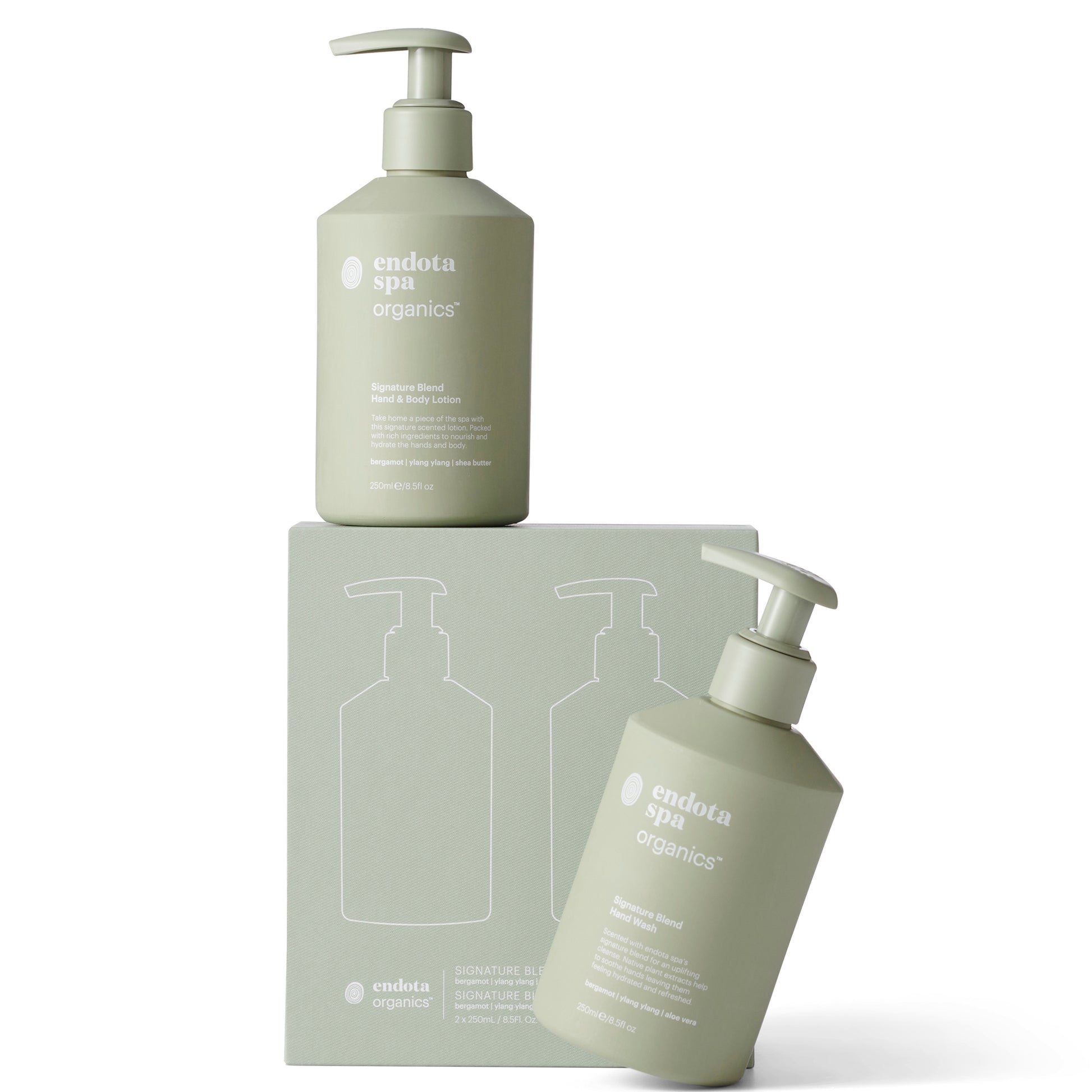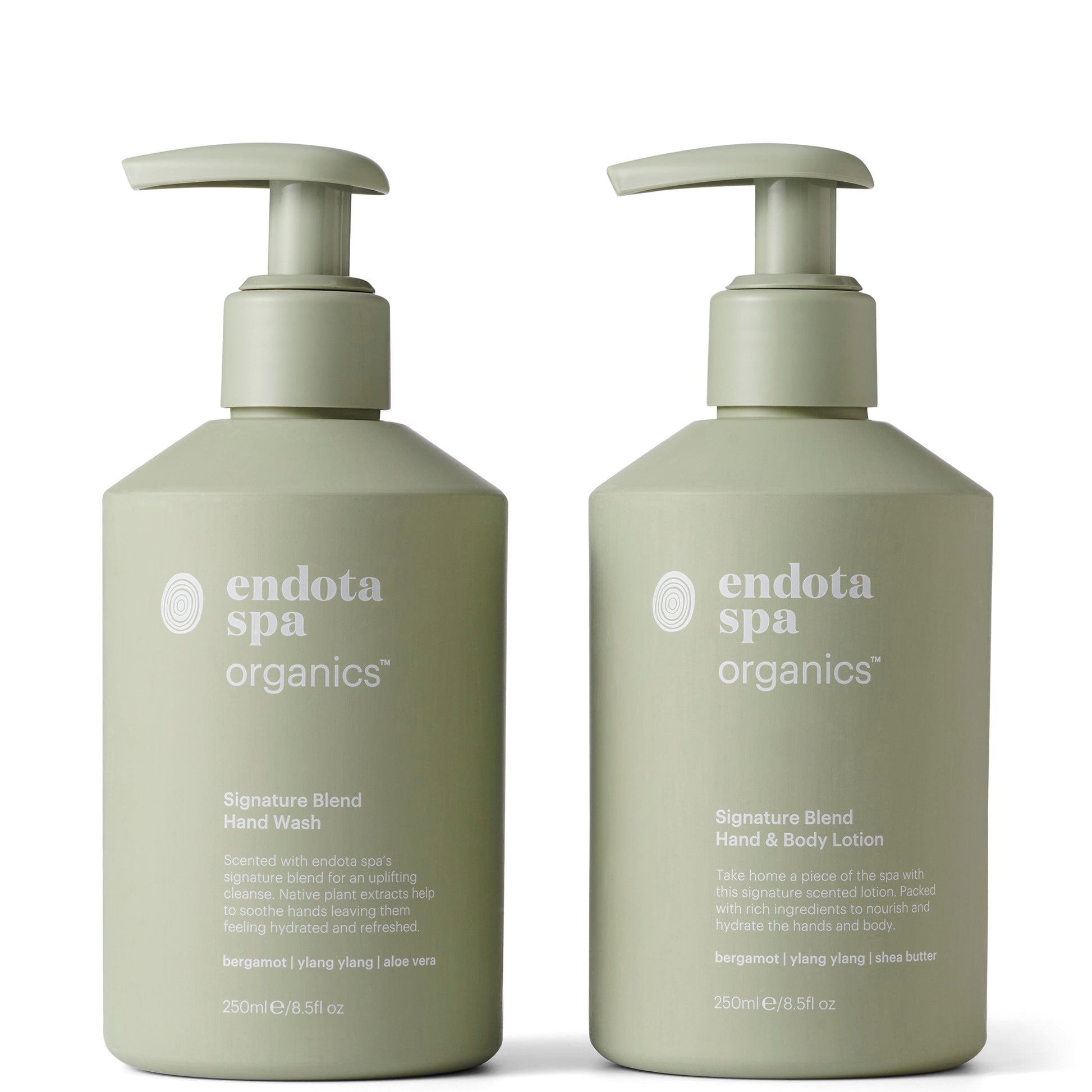 Bring the endota experience home everyday with the Signature Blend Hand Duo. Our Signature Blend Hand Wash and Hand & Body Lotion contain certified organic ingredients to cleanse, nourish and hydrate the skin.