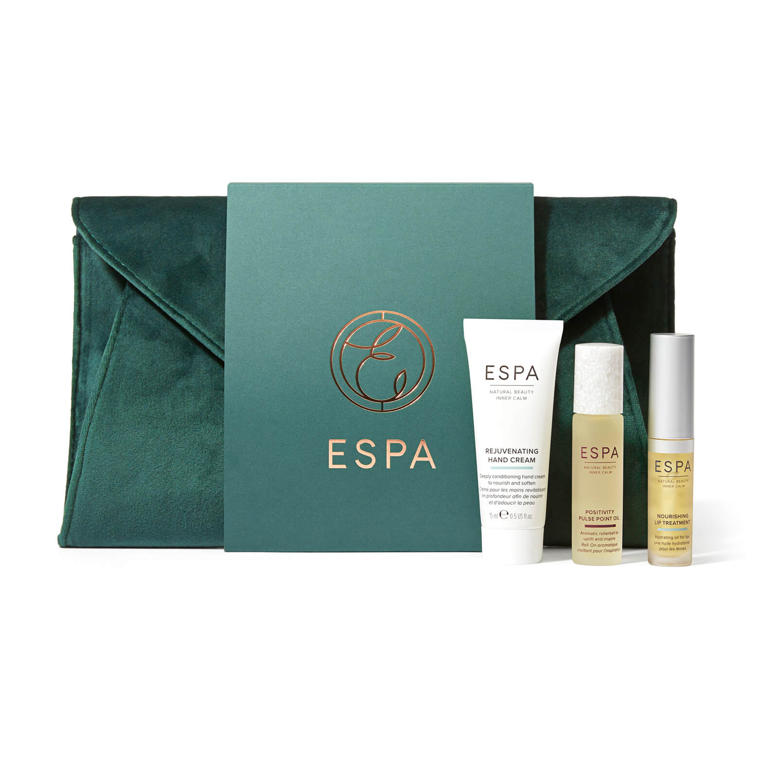 The perfect assortment of face, hand and lip treats for you to keep close at all times, leaving skin soft, supple and delicately scented. Wherever you go, take ESPA’s hand-selected gifts and enjoy beautiful results; all housed in a luxurious velvet pouch.