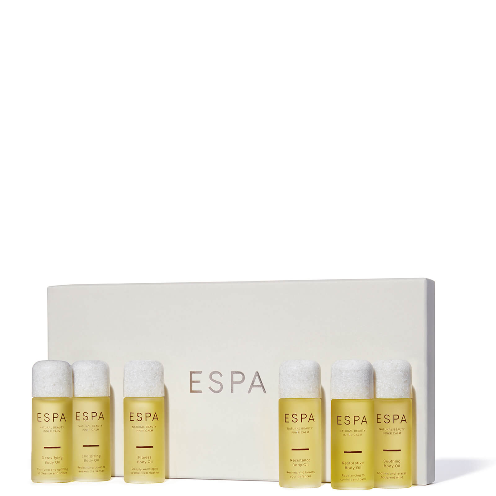 Featuring the very best of nature’s purest and most effective essential oils, this luxury gift includes our six renowned body oils in travel-friendly 15ml sizes– Fitness, Restorative, Soothing, Energising, Detoxifying and Resistance. The ideal introduction to the therapeutic powers of our body oils, these 100% natural bespoke blends are specially created by our aromatherapist to restore calm and balance to the mind while leaving skin intensely nourished, soft and supple. Simply select the blend with the perfect benefit for your mood on any given day. Our Body Oil Collection gift comes beautifully presented in a signature ESPA box.