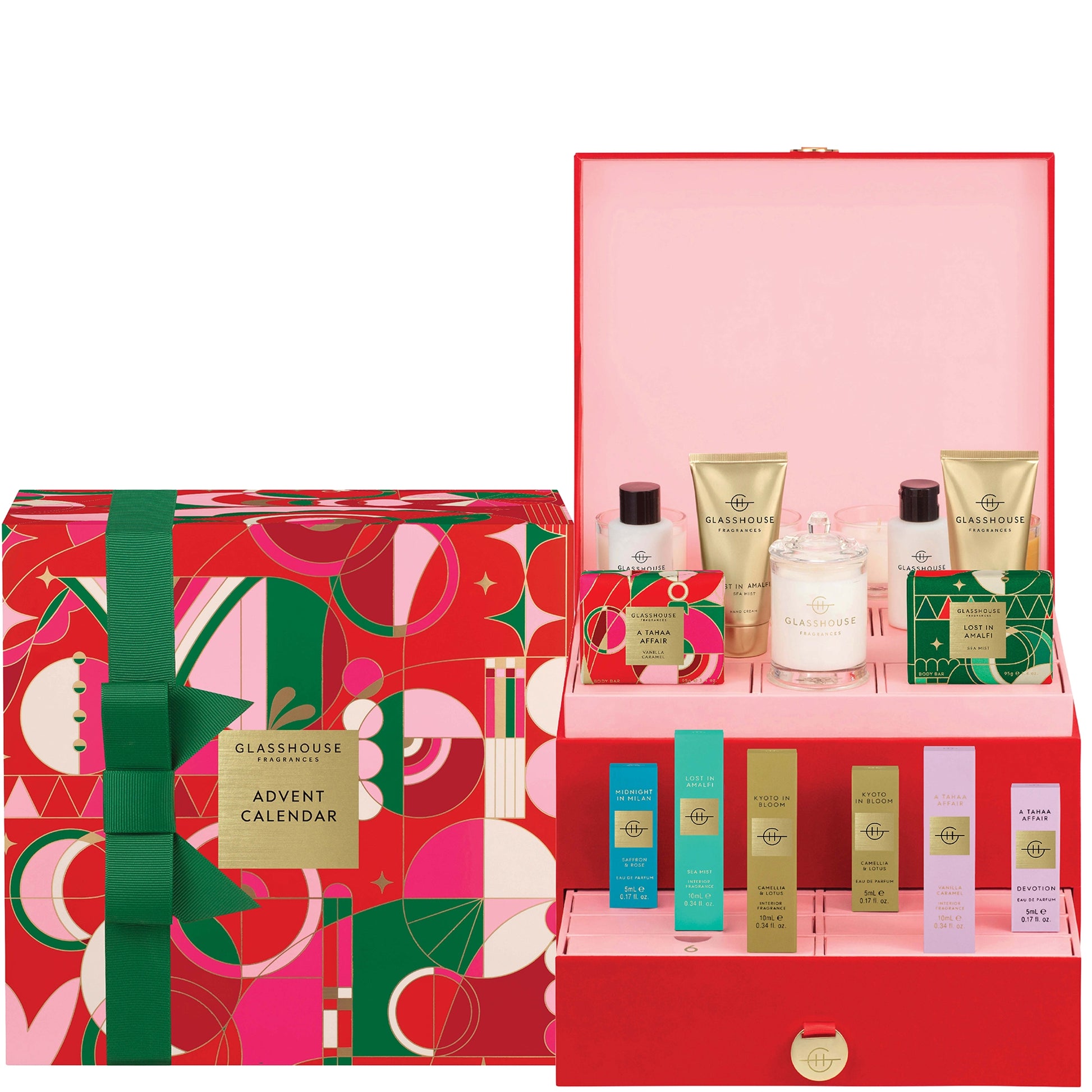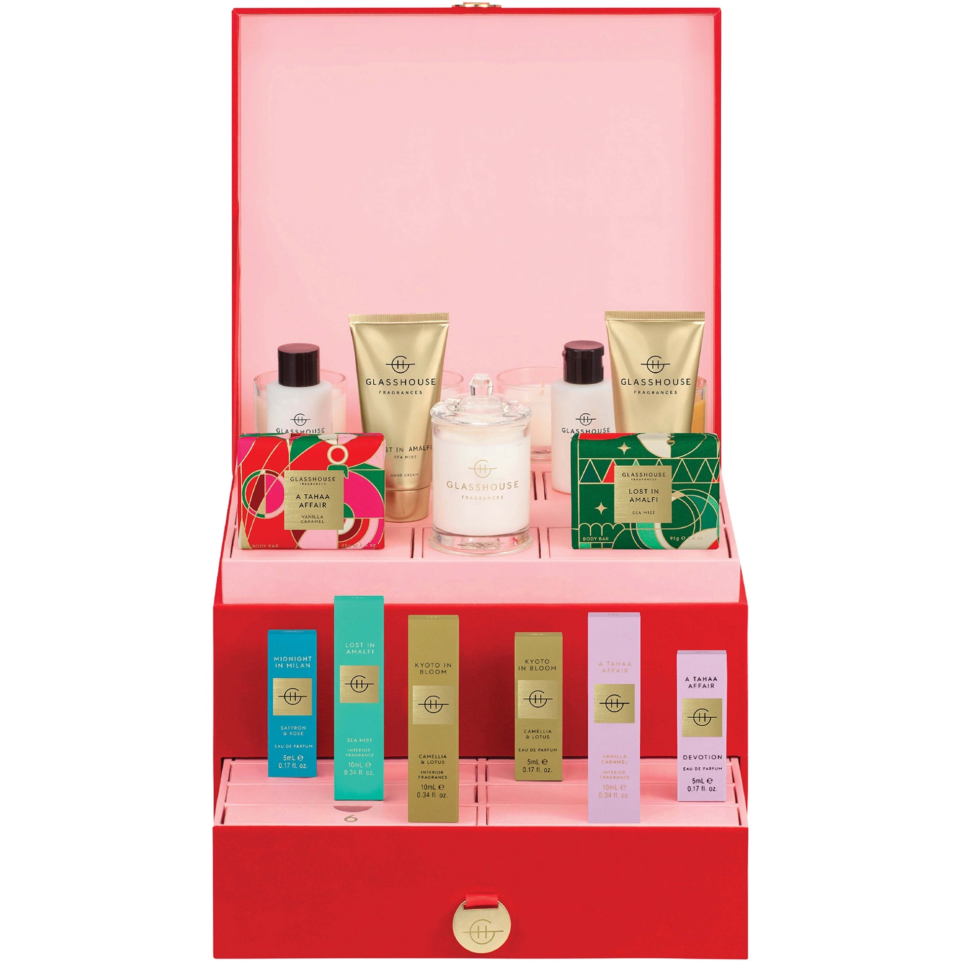 Feed your scent addiction and countdown to Christmas with 24 indulgent surprises. Experience the best of Glasshouse Fragrances with a curated assortment of your favourite miniatures.