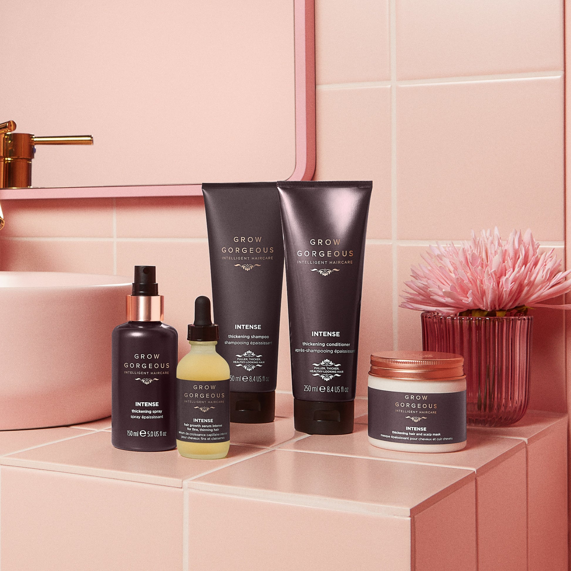 Intense Thickening Conditioner: Aqua/Water/Eau, Cetearyl Alcohol, Niacinamide, Fragrance (Parfum), Glycol Distearate, Caffeine, Stearamidopropyl Dimethylamine, Behentrimonium Chloride, Phenoxyethanol, Panthenol, Lactic Acid, Avena Sativa (Oat) Kernel Oil, Sodium Pca, Sodium Lactate, Hydrolyzed Rice Protein, Brassica Campestris (Rapeseed) Seed Oil, Isopropyl Alcohol, Arginine, Aspartic Acid, Urea, Pca, Chlorphenesin, Allantoin, Emblica Officinalis Fruit Extract, Phytantriol, Trisodium Ethylenediamine Disuccinate, Disodium Phosphate, Sesamum Indicum (Sesame) Seed Oil, Glycine, Alanine, Biotin, Caramel, Serine, Valine, Limonene, Linalool, Benzyl Alcohol, Isoleucine, Proline, Threonine, Citric Acid, Rhizobian Gum, Sodium Hyaluronate, Histidine, Phenylalanine, Potassium Sorbate, Sodium Benzoate, Sodium Hydroxide.