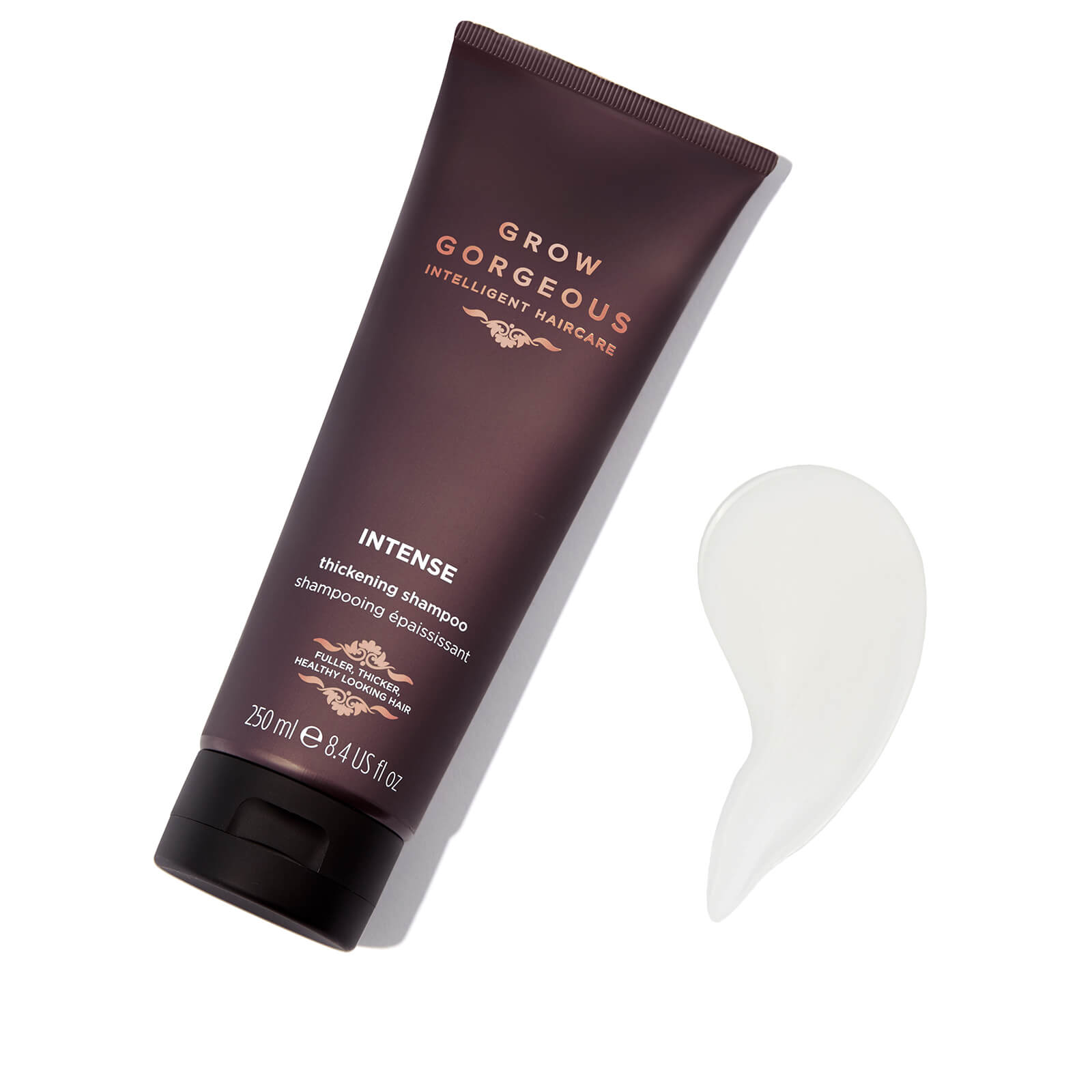 Recharge thin, lacklustre strands with Grow Gorgeous Intense Thickening Shampoo. The richly nourishing formula effectively cleanses the scalp, roots and ends of the hair to promote fuller, more voluminous locks.