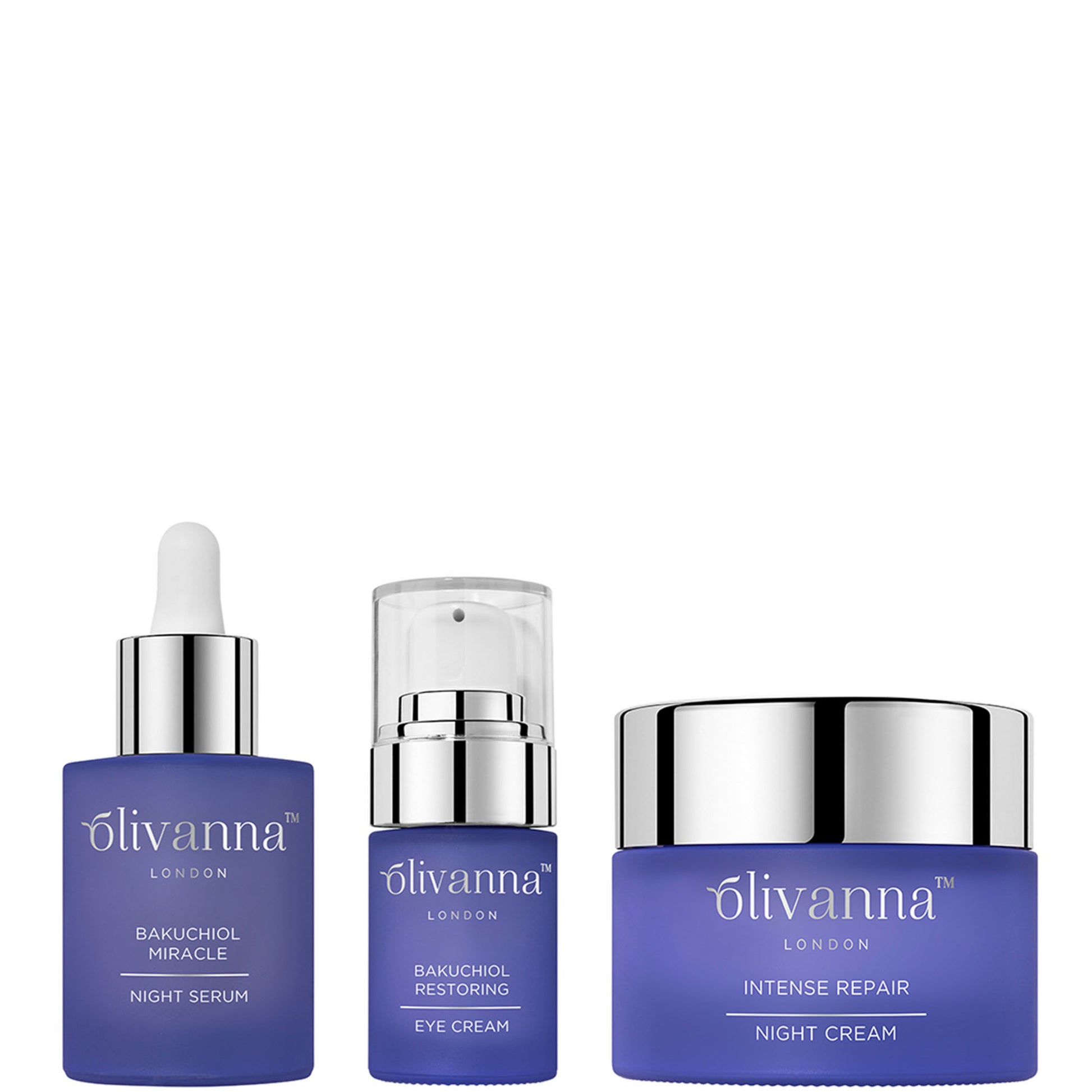 Discover Olivanna's Signature Night Time Essentials set, to optimise skin repair and nightly rejuvenation. This trio works overtime to strengthen and repair the skin while you sleep featuring the multi-award-winning Intense Repair Night cream enriched with collagen-boosting organic cotton thistle extract and skin-nourishing ceramides to increase elasticity.