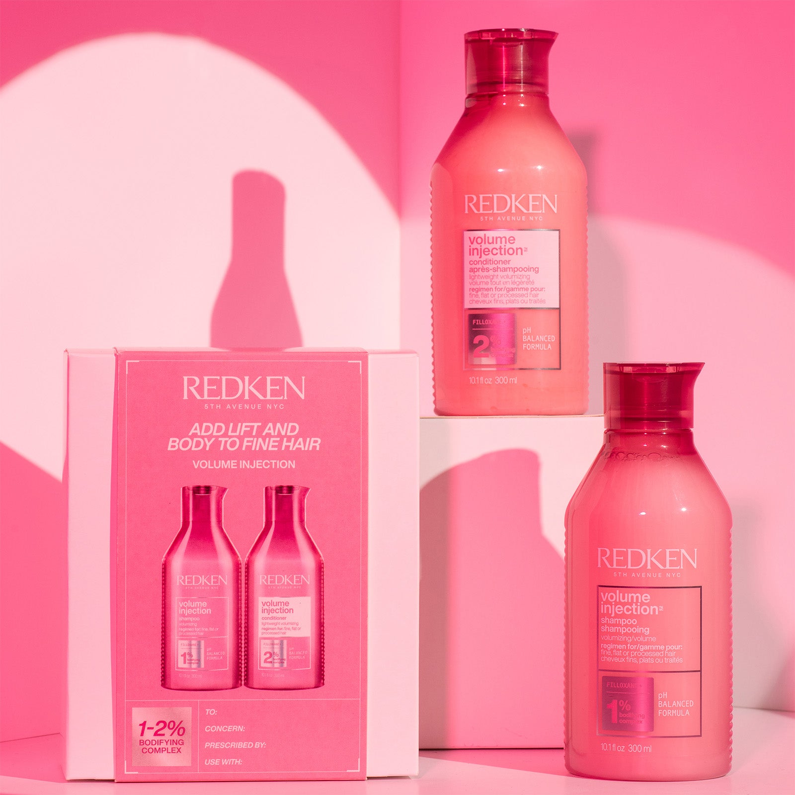 The Redken Volume Injection Haircare System helps to provide instant volume and lift to fine, flat and processed hair.