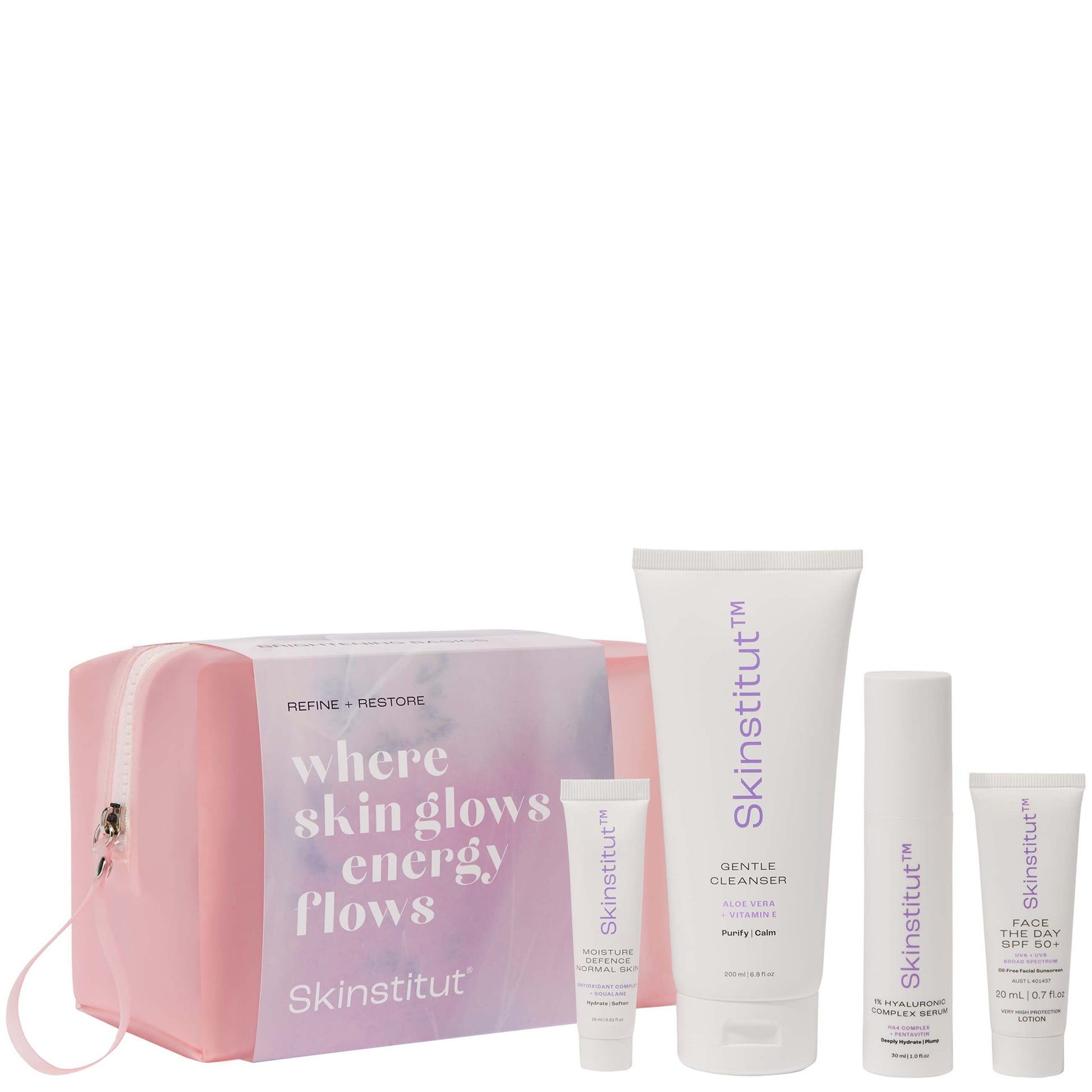Meet your everyday essentials for deeply hydrated dewy skin. The perfect kit for all skin types, whether you're new to cosmeceuticals or need to restock on your skin heroes, this gentle yet high performing kit covers your routine from AM to PM for freshly hydrated, dewy, and bright skin.