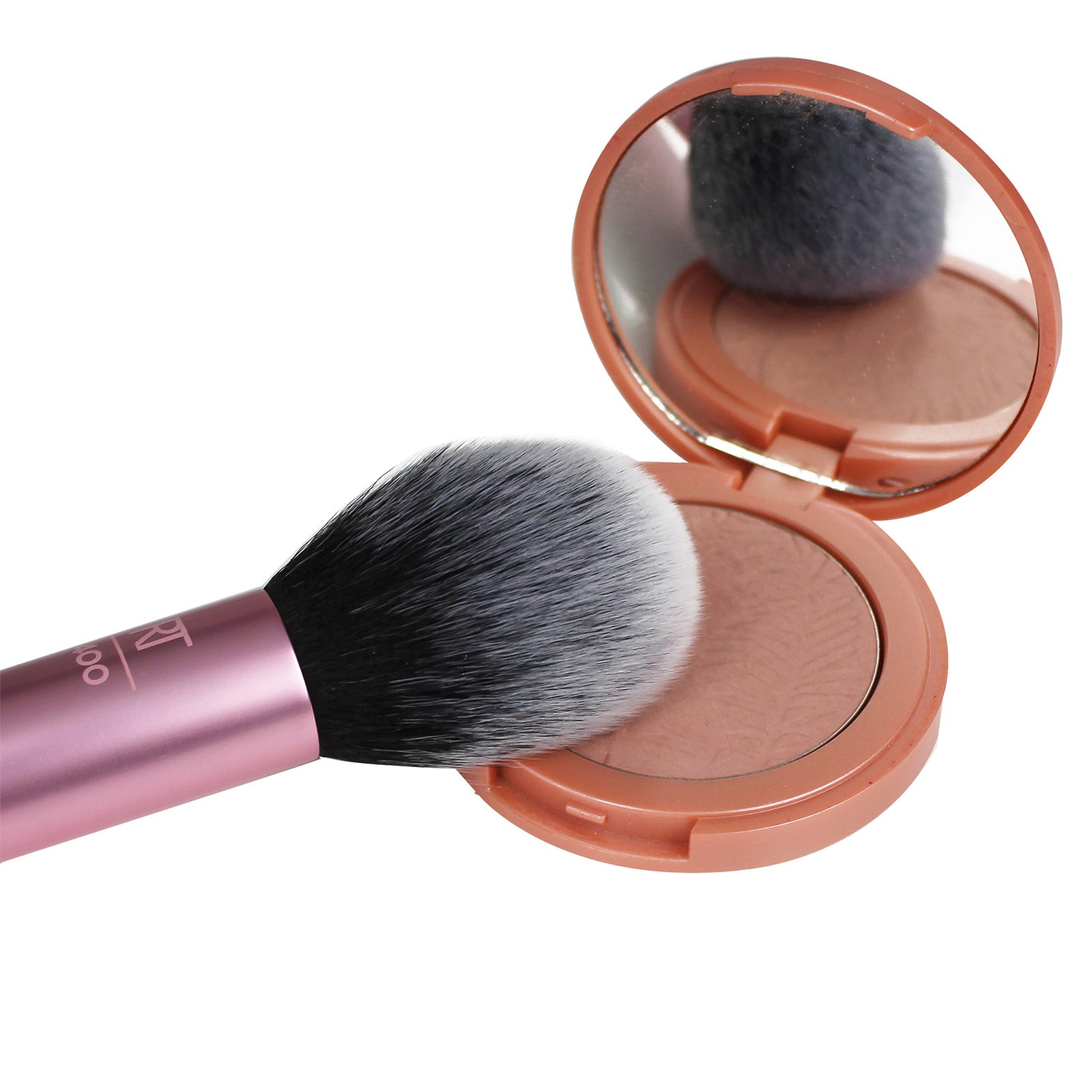 Expertly apply your blushers and bronzers with Real Techniques's Blush Brush; a high tech brush that effortlessly buff face powders into skin for a seamless finish. Fitted with hand-cut, synthetic taklon bristles encased in a sleek metal ferrule and handle, the brush features a fluffy, rounded brush head that facilitates in flawless blending. Add definition to your cheeks with ultimate ease.