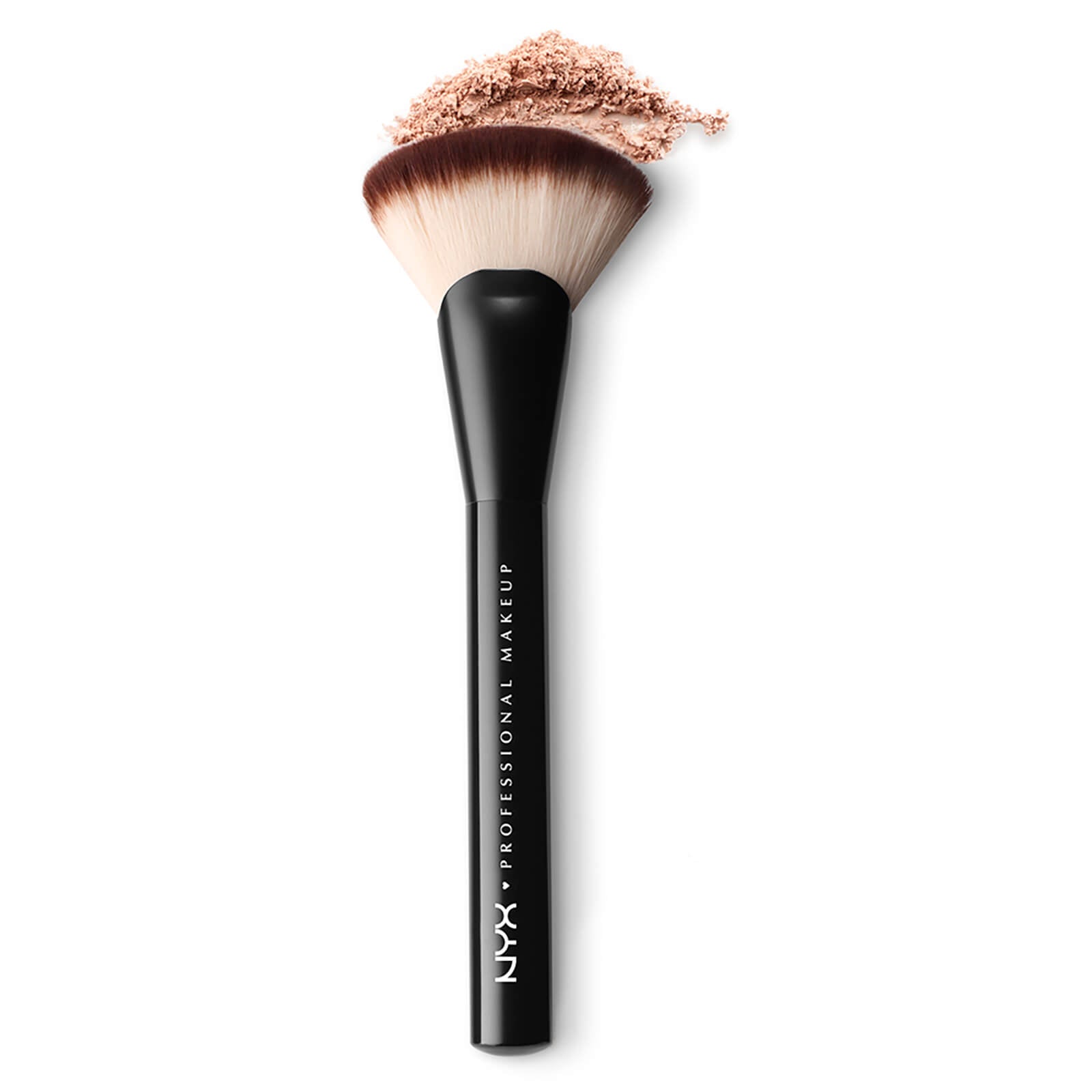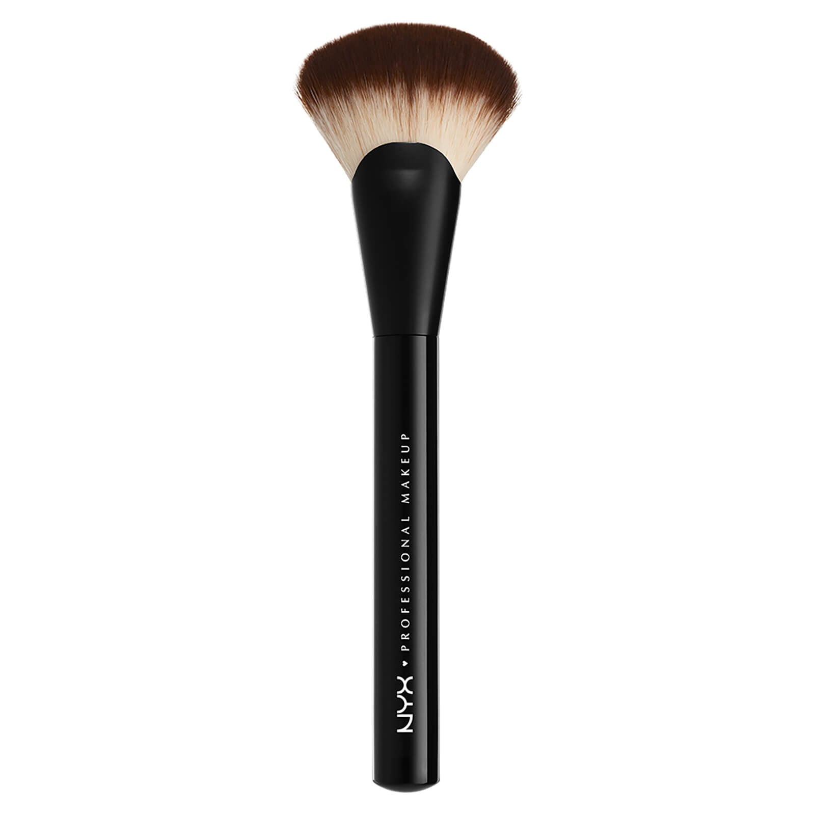 Gear up like a pro and add your own expert touch to every look with the NYX Professional Makeup Pro Fan Brush - a dense, velvety brush for creating a flawless, smooth full coverage finish. Creates a no makeup look without streaking. Also works great with powders to give an effortless highlight on the highest points of the face. Made with synthetic fibres.