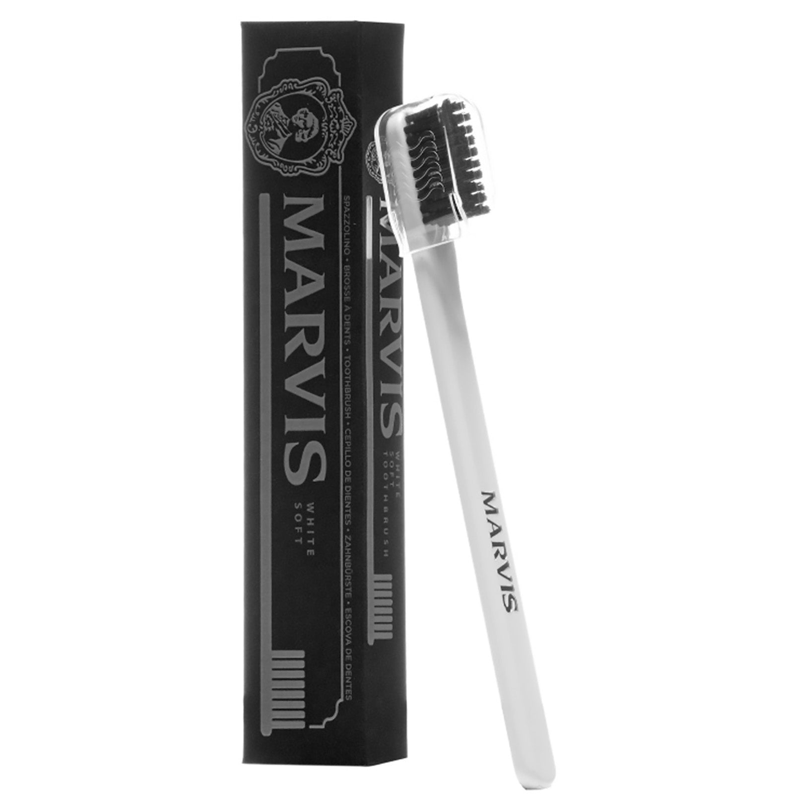 This stylish two-tone, minimalist toothbrush from Marvis has a soft black bristles and a long white handle. Great for travel thanks to its lightweight, durable design and included cap. Stylish and suave looking this is the perfect toothbrush for the minimalist bathroom.