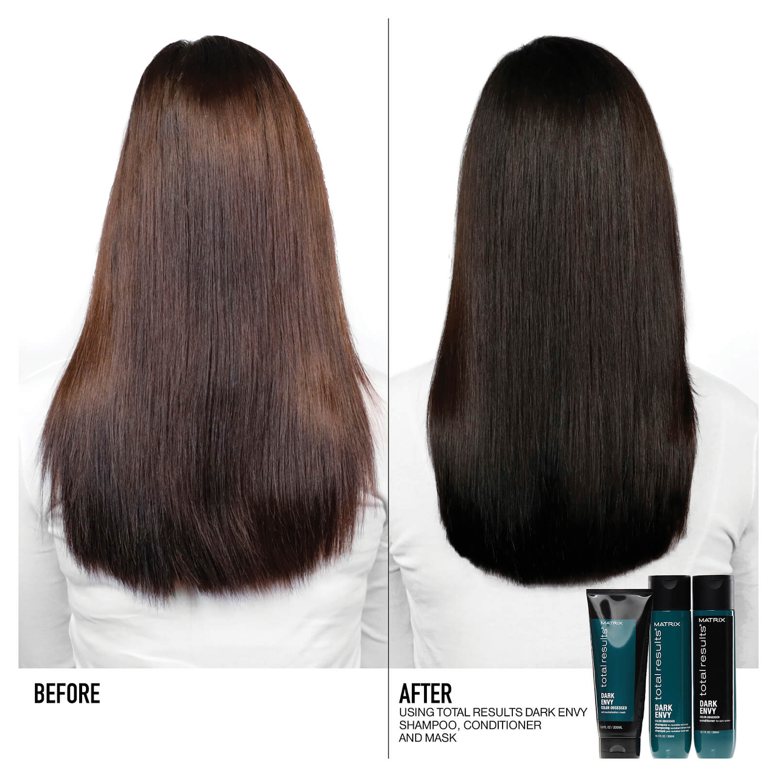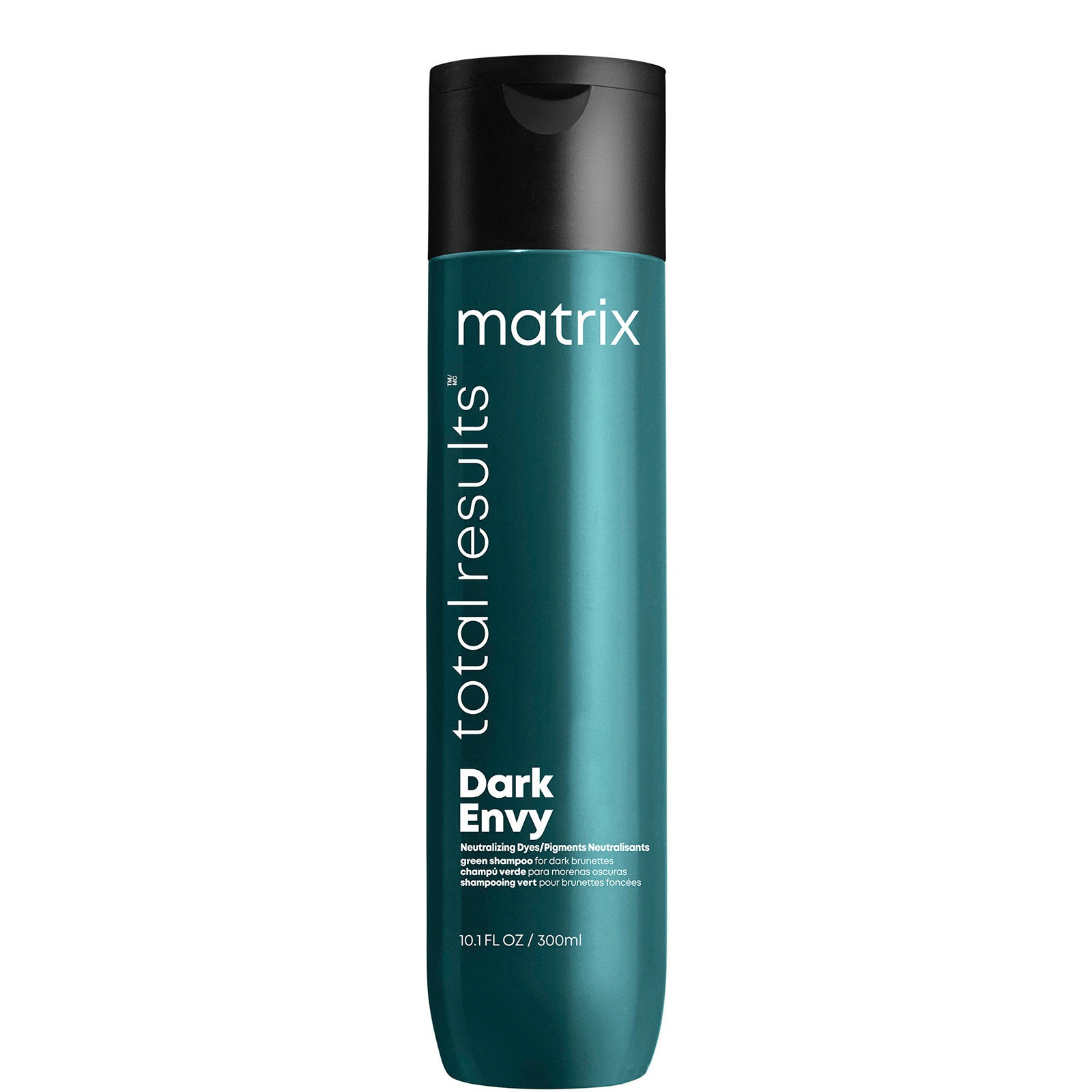 Seeing red? Enrich dark bases with Dark Envy - Our first range that neutralizes red undertones in virgin and all-over black to dark brown hair colour. Matrix Total Results Dark Envy Shampoo is a green colour-depositing toning shampoo that enriches dark bases and neutralizes red undertones.