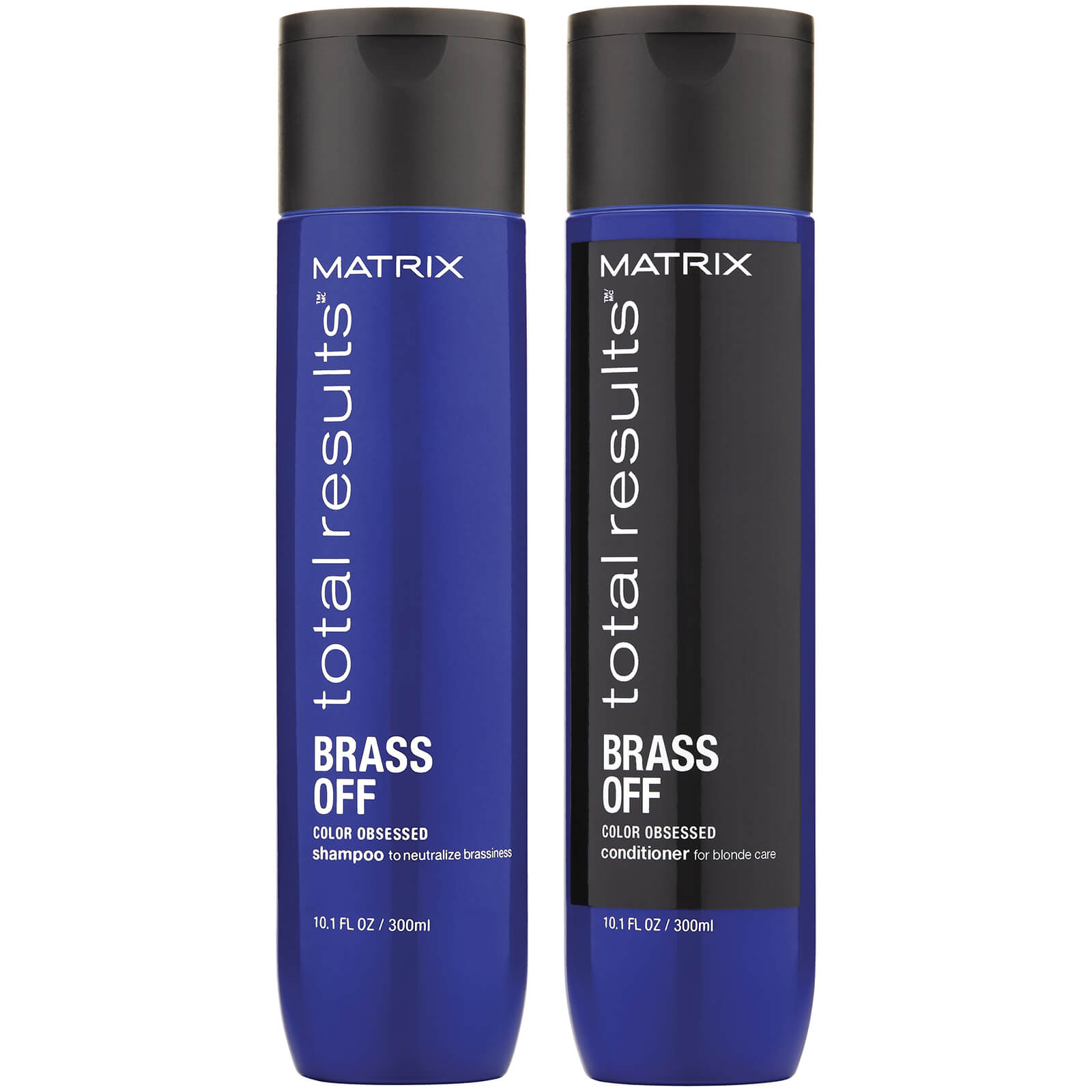 Treat brassiness and nourish dry hair with Matrix Total Results Brass Off Shampoo and Conditioner. Matrix Total Results Brass Off Shampoo is a professional salon clarifying shampoo that neutralizes brassy tones while refreshing your hair with cool tones. This shampoo deposits balancing blue-violet pigments to reduce brassy, orange undertones. Suitable for brunette and dark blonde hair. Matrix Total Results Brass Off Conditioner has a non-colour depositing formula helps hair to retain cool tones while softening and replenishing dry and brittle hair. When used as a follow-up, this conditioner locks in the anti-orange neutralisation achieved by Brass Off Shampoo. Infused with vitamin oil, this formula enhances shine.