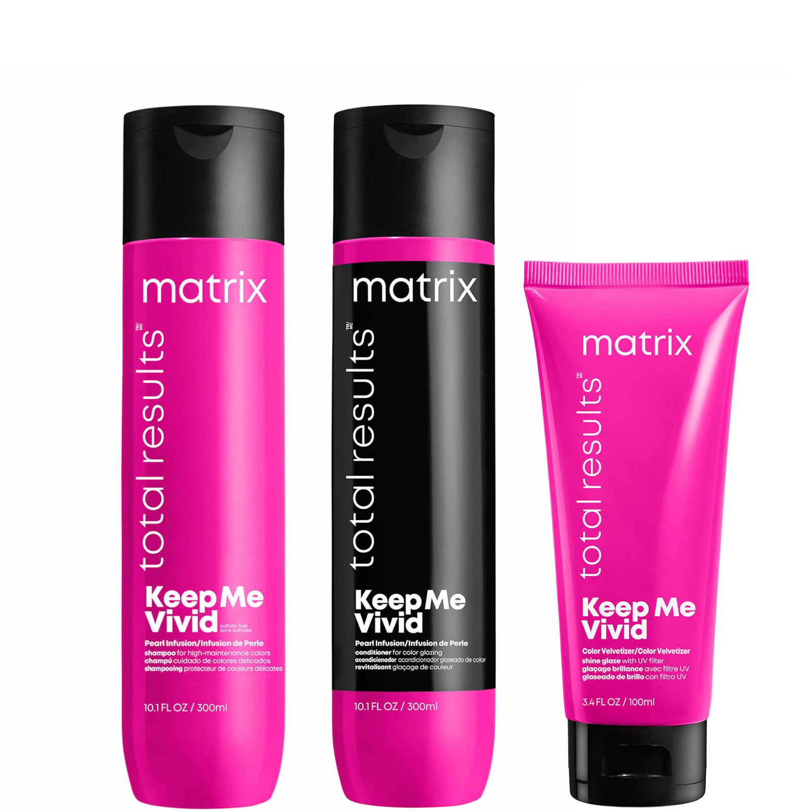 Nourish hair and lock in colour with Matrix Total Results Keep Me Vivid range. Using the Keep Me Vivid system, your hair colour can last for up to 21 washes and benefit from increased shine.