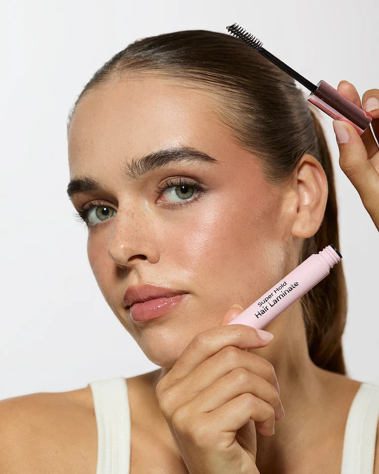 MCoBeauty SUPER HOLD HAIR LAMINATE is a strong-hold gel-wax to smooth and set stubborn hairs into place. This dual-sided brush works double-duty, slicking and combing fly-aways and baby hairs for all-day smoothness. The long bristles coat your hair in a transparent, matte-finish formula, reducing the look of frizz and fluff. Then glide the short comb across your hair to lock in your sleek, polished hairstyle. With the hold of a gel-wax and the flexibility of hair spray, this hybrid formula never looks crunchy or flaky and always feels smooth.