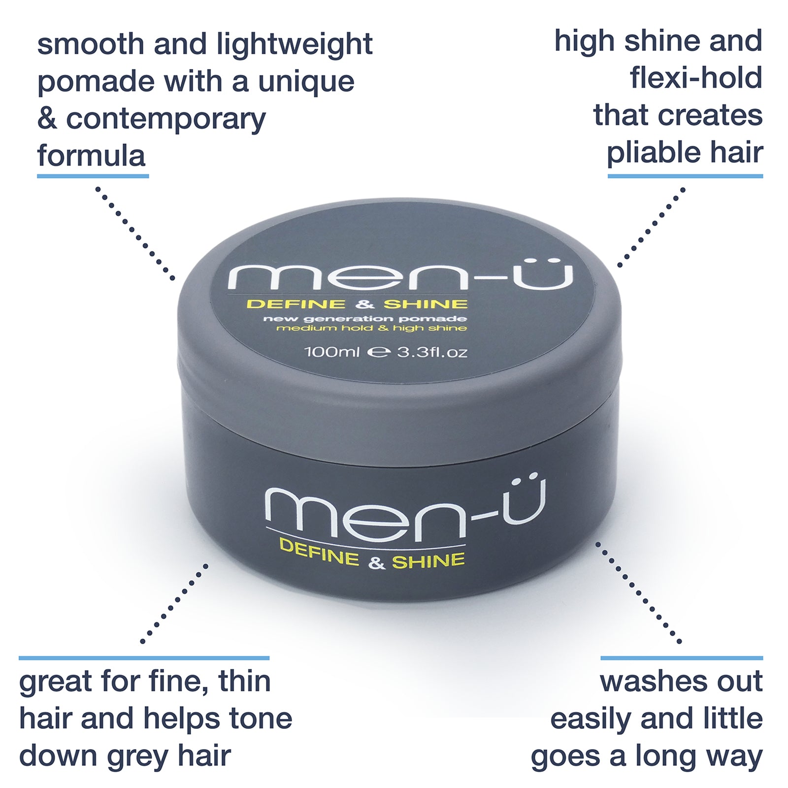 Perfect for the well-groomed gentleman, the Define and Shine Pomade from men-ü is a re-workable wax that delivers high shine, whilst providing medium hold. Suitable for all hair types, the lightweight product can control even coarse, wavy and thick hair. Mould, sculpt and experiment to create your desired hair style. Washes out easily with water. E.N.