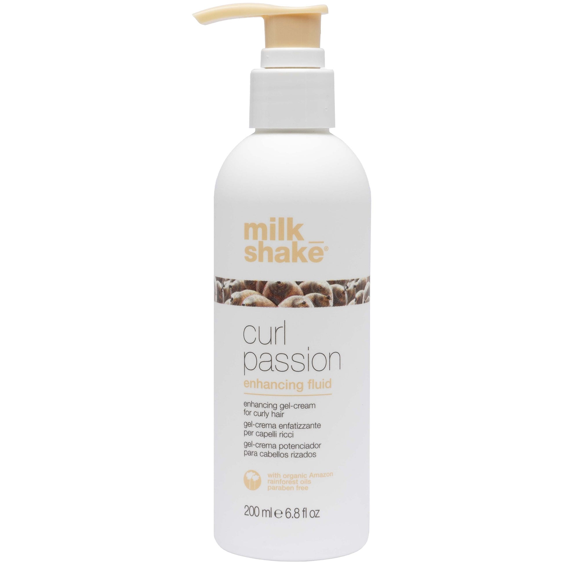 milk_shake curl passion enhancing fluid is an enhancing gel-cream for curly hair. Its ultra-light formula doesn't weigh hair down and guarantees shine and definition. Perfect for blow-drying with a brush or diffuser.