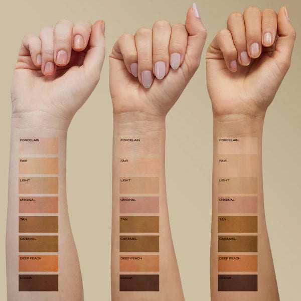 Working directly from the pot, apply a small amount of product to your brush of choice. Apply using a patting motion to the under eyes, around the nostrils and any other areas you’d like to conceal. Once the desired coverage is achieved, blend the edges to ensure a fused finish.