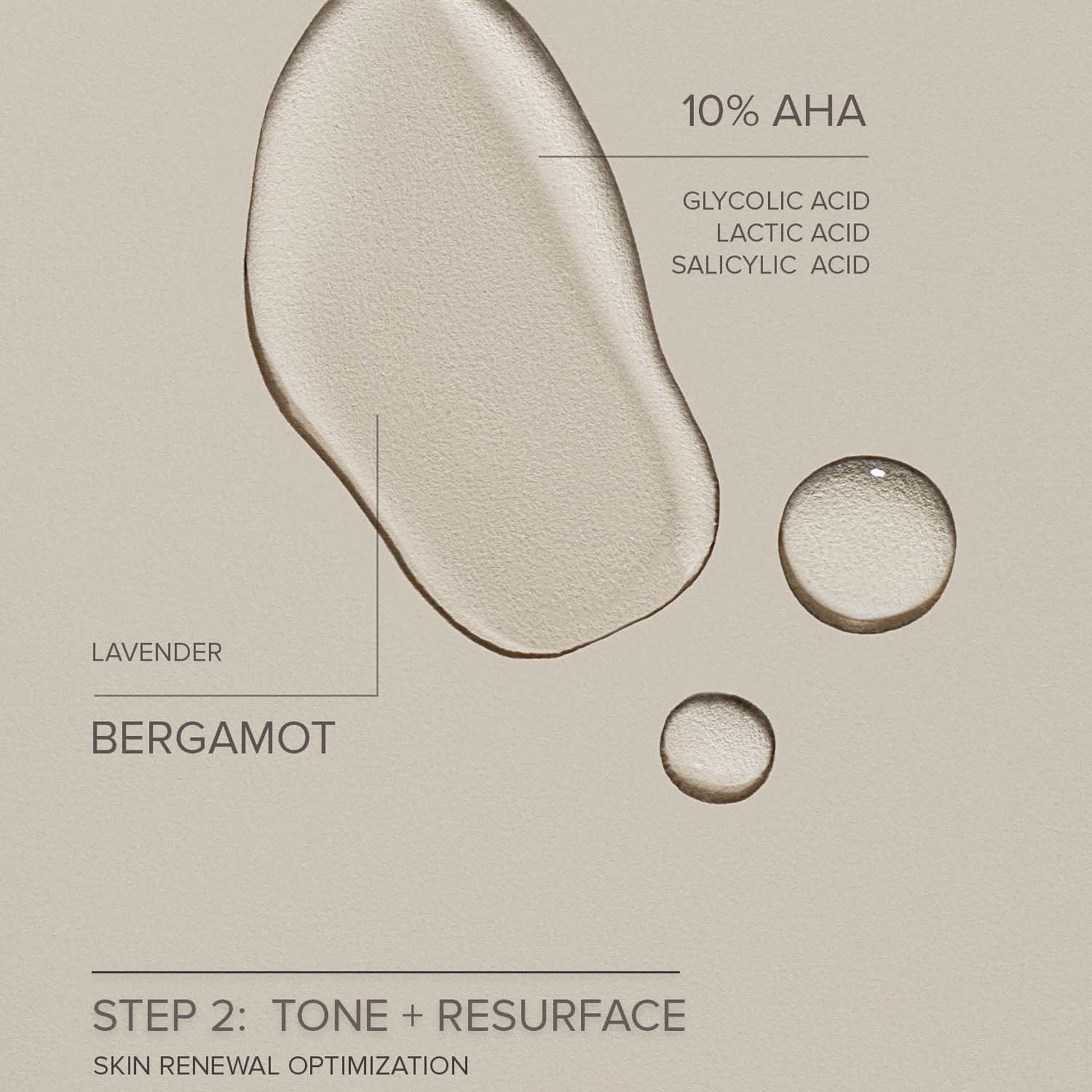 An essential step in the skin renewal process, the RESURFACING BODY TONER works by sloughing off dead skin, deep cleansing pores, smoothing skin texture, and helps reduce the appearance of hyperpigmentation. Use after bath or shower to refresh, smooth and tone skin to allow body moisturizers to absorb better for soft and glowing skin.