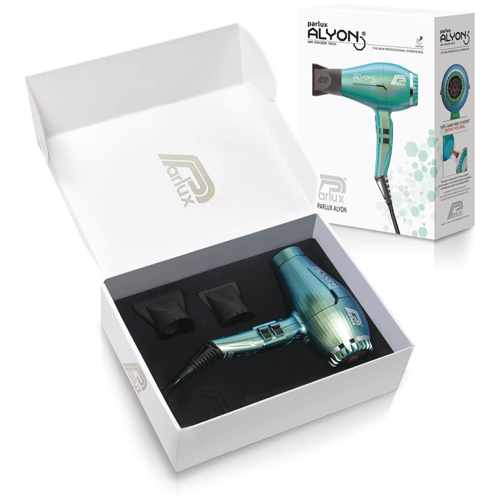 Meet the newest addition to the Parlux Alyon family - the beautiful, mesmerising Parlux Alyon in Jade! Parlux Alyon Air Ionizer Tech Hair Dryer is lightweight, ergonomic, durable and powerful, the gold standard in professional hair dryers. Utilising the latest Air Ionizer Tech, Parlux Alyon is kinder to hair, creating effortlessly lustrous results. Parlux Alyon is a combination of technology and innovation with over 40 years of Parlux expertise. The new K-Advance Plus motor gives superior performance in terms of higher power and a longer lifespan of an amazing 3,000 hours. 2,250 watts of power and 84 cubic metres per hour airflow reduces drying time whilst preserving the integrity of hair.