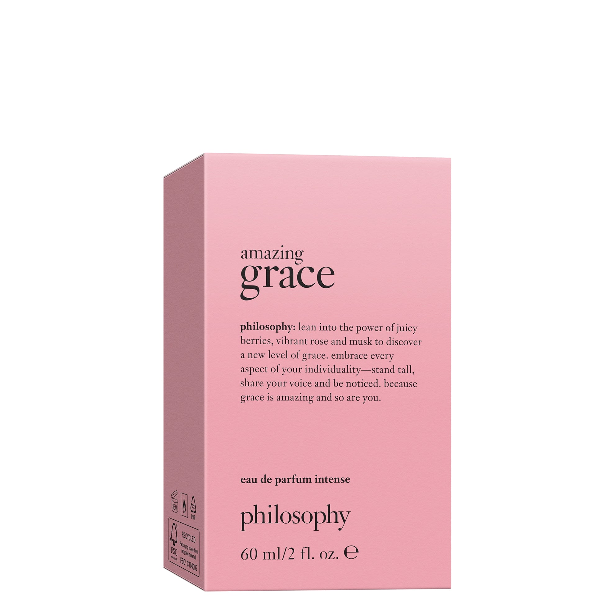 grace is feeling intensely amazing. the new amazing grace eau de parfum intense, is the most intense version of our iconic women's fragrance that lasts all day. we added an abundance of pink notes with juicy berries, sustainably sourced rose absolute and our signature soft musk, for an intensely concentrated, fruity-floral musk perfume that's feminine, modern and joyfully sweet. a feel-good scent so you can find your grace all day long.
