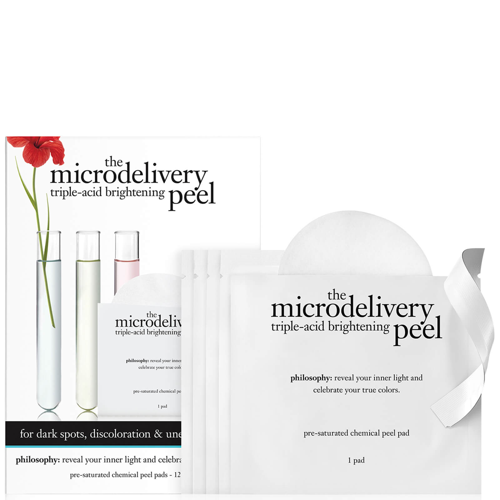 Experience superior peel results in one convenient step-at home-with zero downtime. The microdelivery triple-acid brightening peel delivers advanced anti-aging and skin-brightening benefits through an advanced triple-acid formula that dissolves and sweeps away dull, dead skin cells and impurities. The result: skin tone and clarity appear improved and fine lines, diminished. Plus, a unique skin-brightening technology visibly reduces the appearance of dark spots and discoloration, for a revitalized, luminous complexion. Includes 12 individually wrapped pre-saturated peel pads, for weekly use.