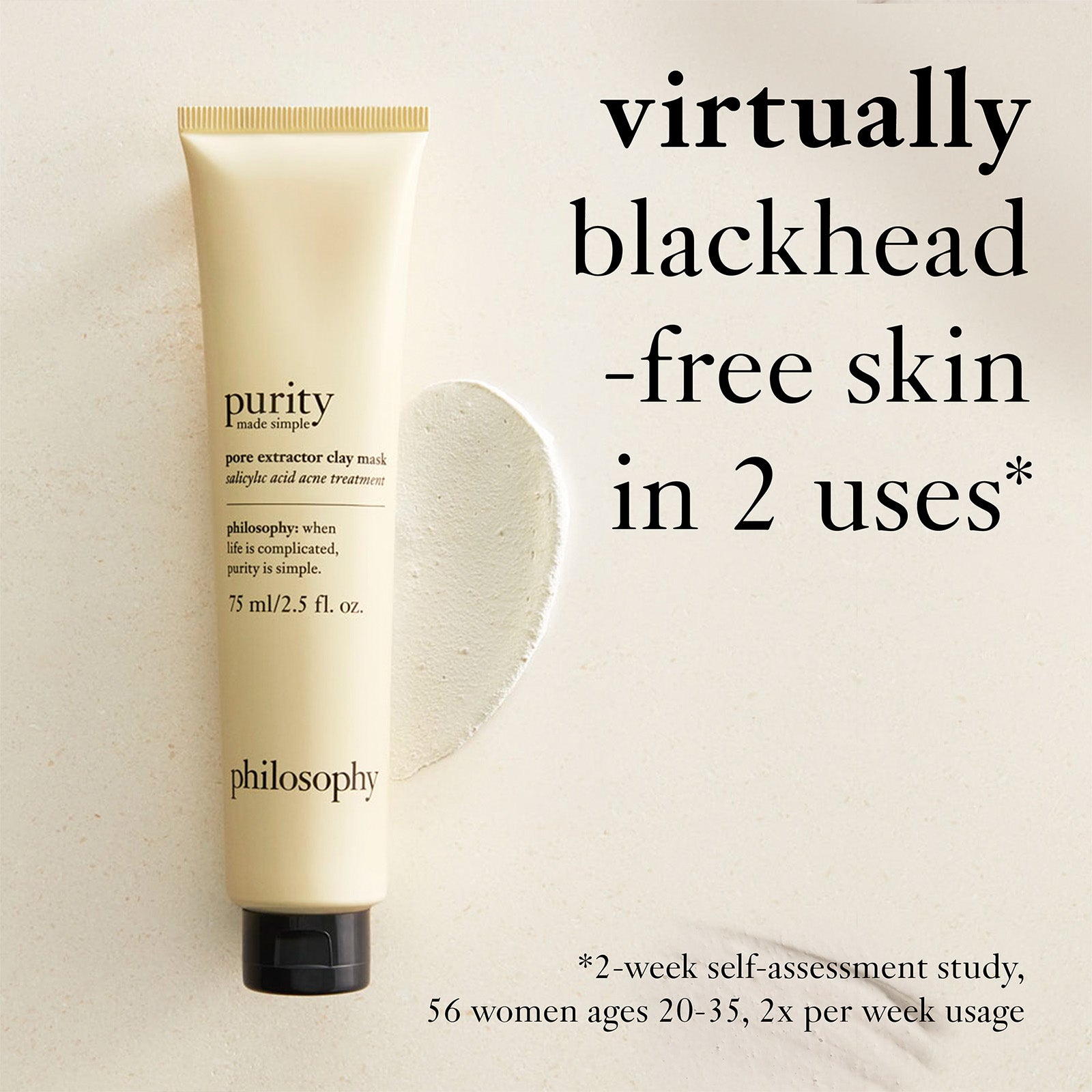 Reveal clean and clarified skin with the Purity Exfoliating Clay Mask from philosophy. Enriched with blemish-fighting White Clay, Salicylic Acid and natural exfoliants, the purifying face mask helps to draw out dirt and impurities from deep within pores, helping to banish blackheads and prevent future breakouts.