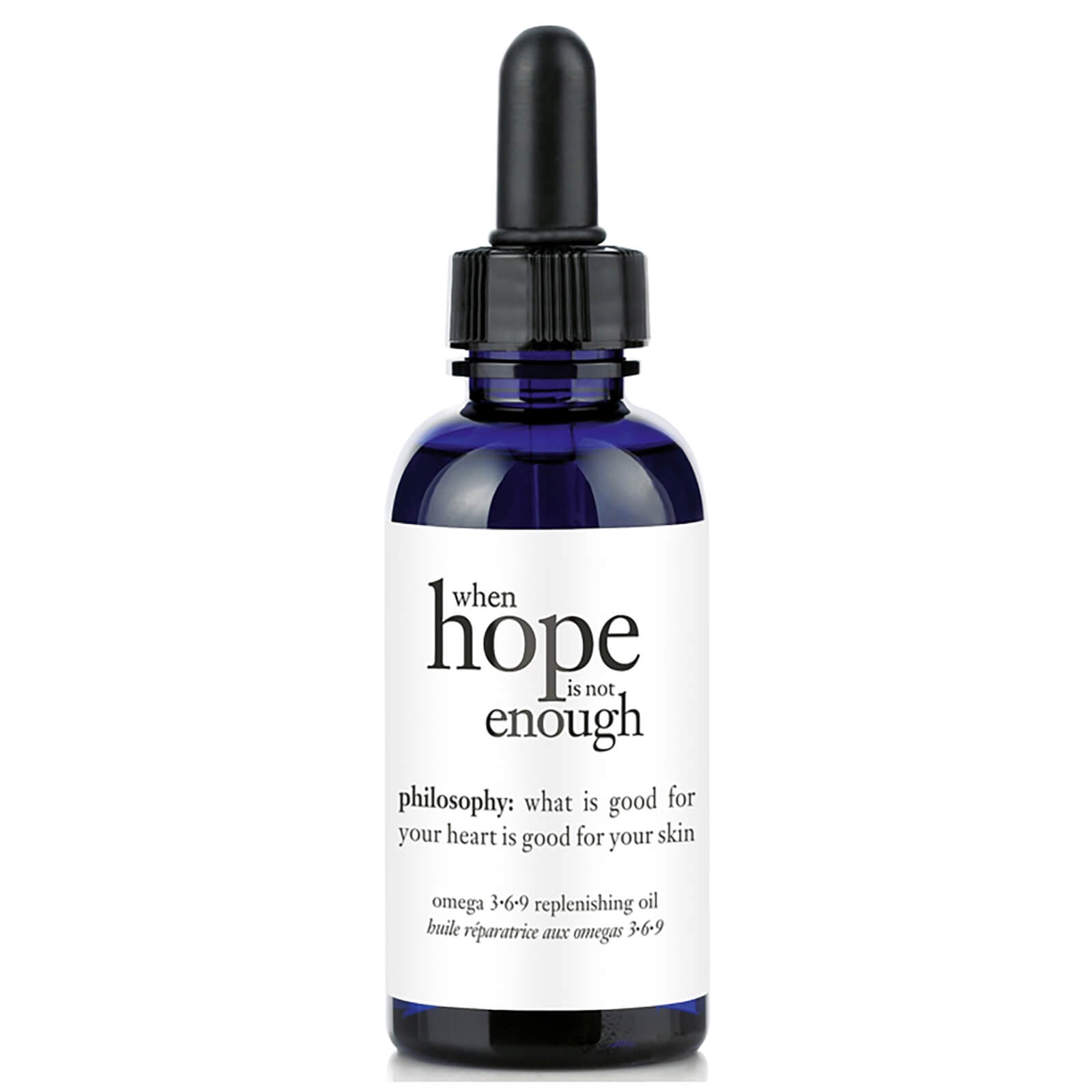 Pamper skin with the When Hope is Not Enough Omega 3-6-9 Replenishing Oil from philosophy; a nourishing treatment to boost dull and lacklustre complexions in need of a little TLC.