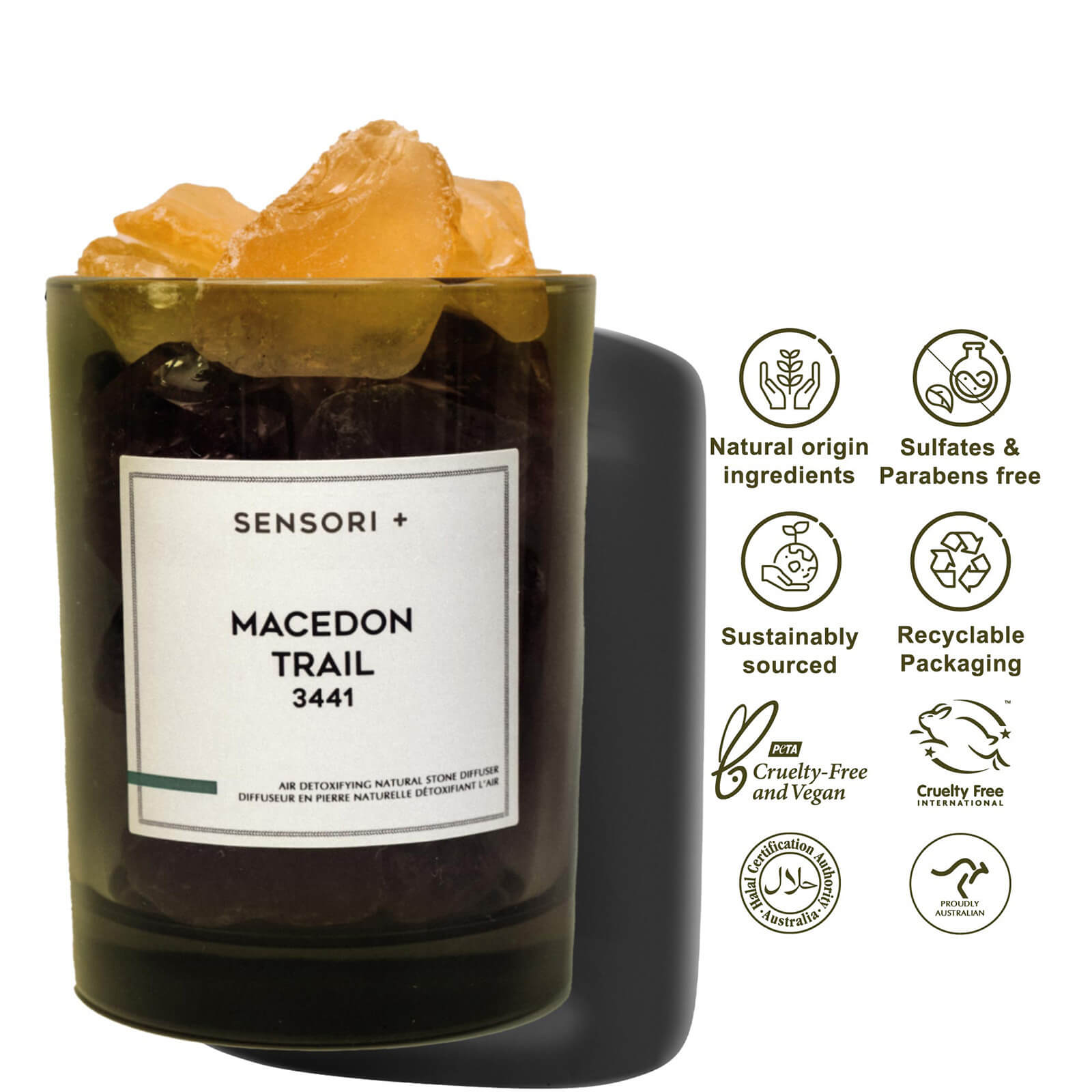 Remove packaging and place vessel on a leveled surface. Place the gel pack at the bottom of the vessel before placing amber stones. Replace gel every four (4) weeks to maintain the detoxifying efficacy. Place stones inside the vessel. Drop desired amount of Concentrated Perfume Oil on top of diffuser. Top up if needed. Place in a desired area.