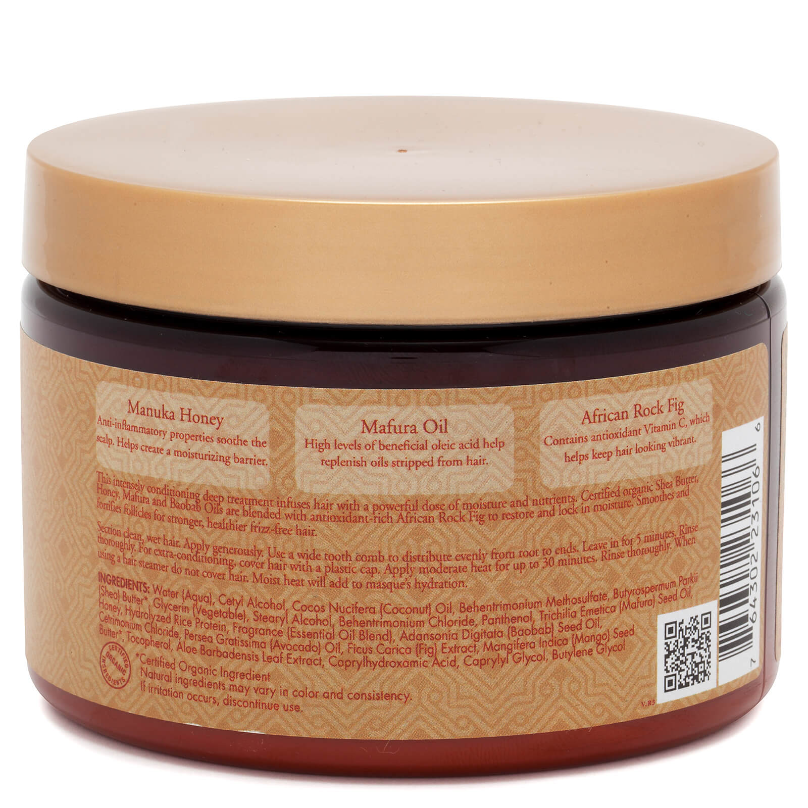 This intense conditioning deep treatment infuses hair with a powerful dose of moisture and nutrients. Certified organic Shea Butter, Honey, Mafura and Baobab Oils are blended with antioxidant-rich African Rock Fig to restore and lock in moisture. Smoothes and fortifies follicles for stronger, healthier frizz-free hair.