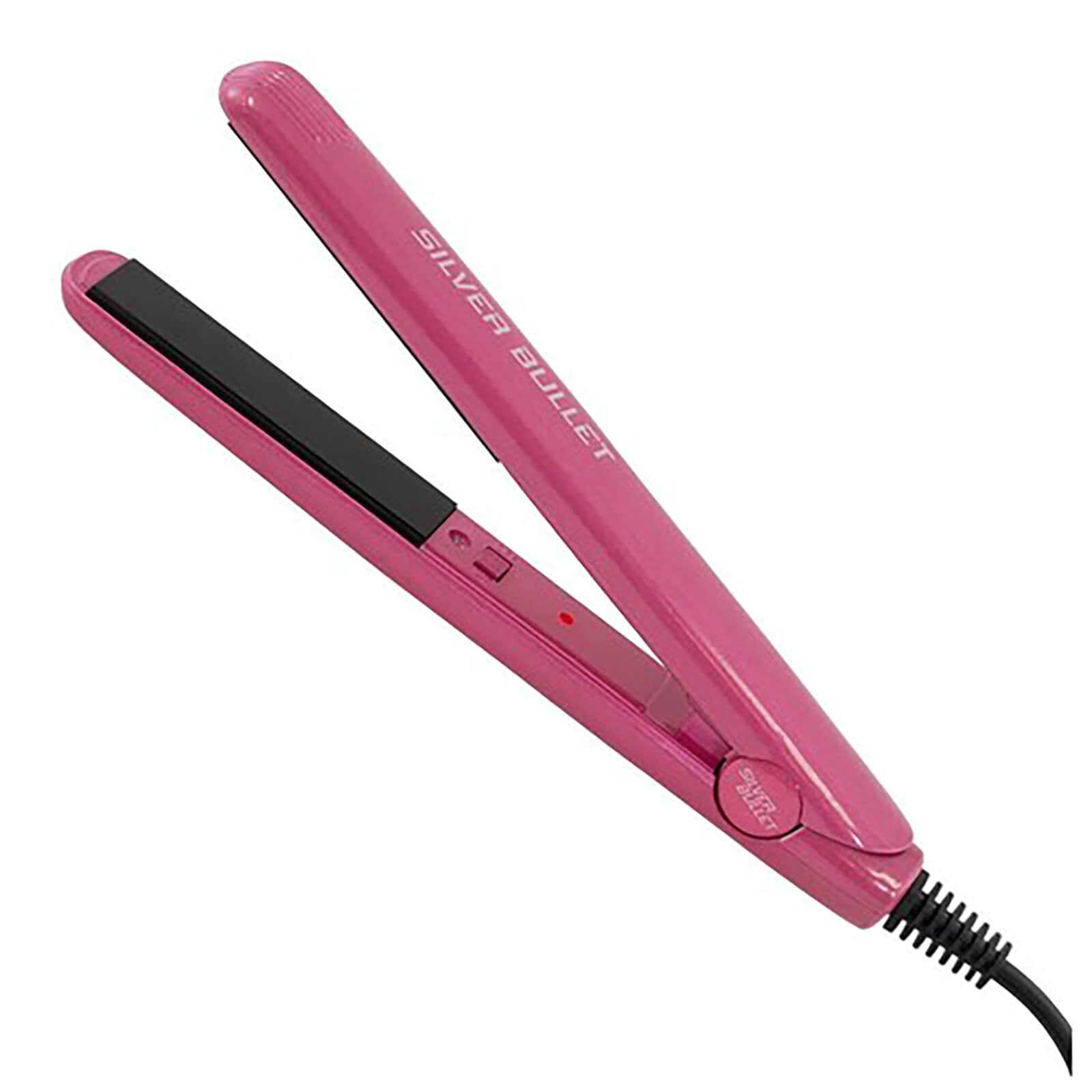 Incredible results and performance in a mini travel size. Silver Bullet Mini Hair Straightener Pink creates salon professional styles, such as straightening, curling, waving and flipping, wherever you are in the world. Dual voltage for worldwide use, this mini hair straightener features professional Ionic Technology to promote silkier, smoother hair, while eliminating frizz and flyaways. Ceramic plate surfaces heat rapidly and distribute heat evenly and consistently, enhancing your results. Available in fun, stylish colours, Silver Bullet Mini Hair Straightener is the cleverest travel companion.