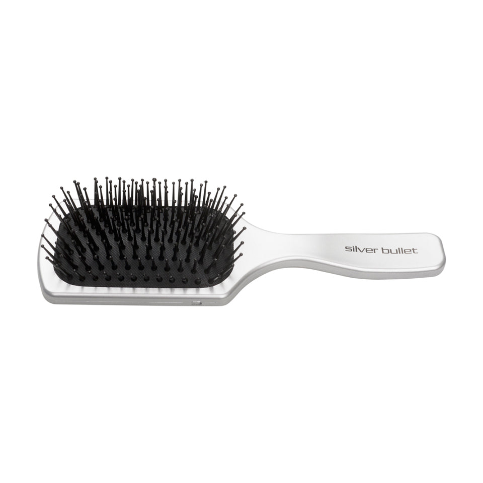 Designed with nylon bristles, the Silver Bullet Paddle Hair Brush is great for use on wet hair and thicker hair types