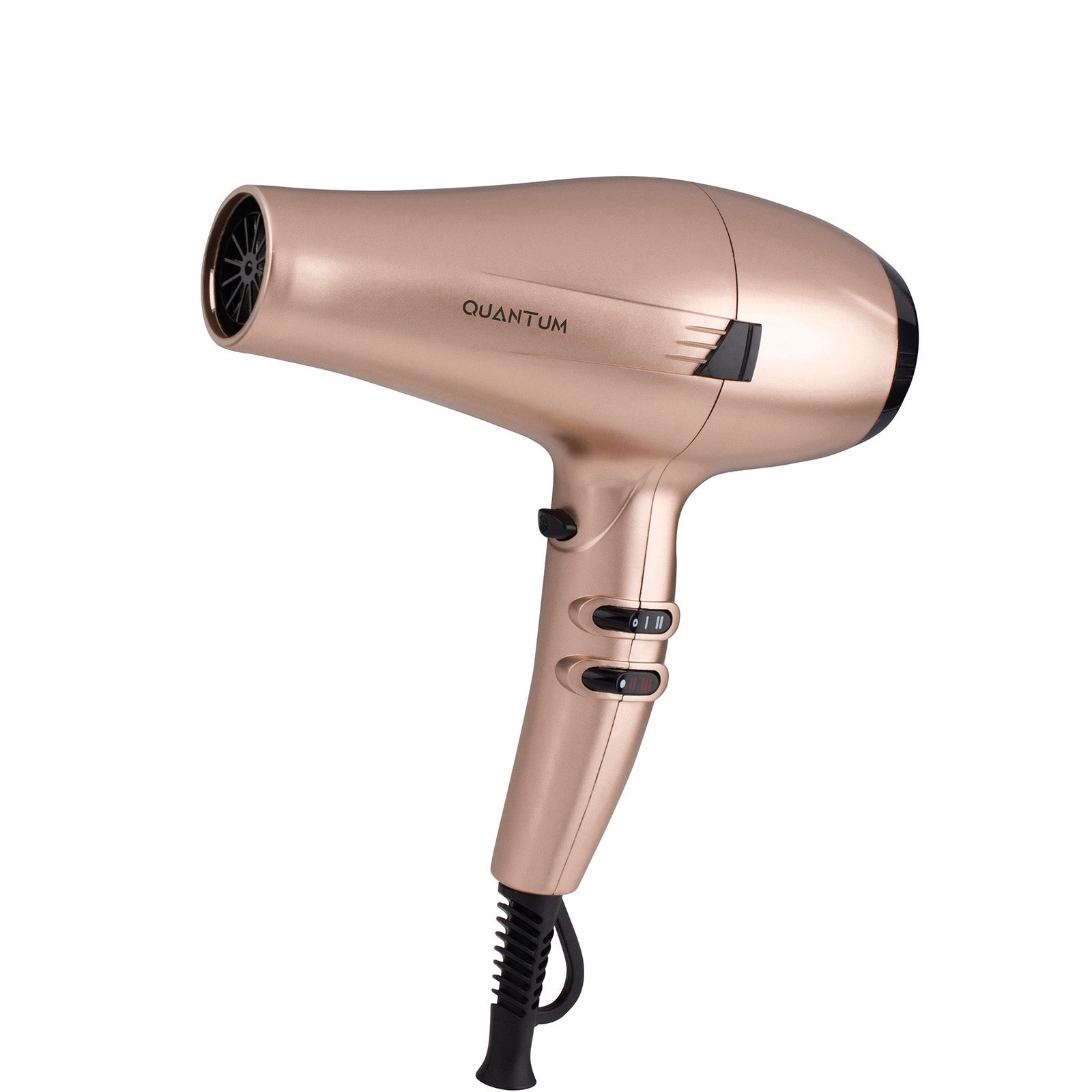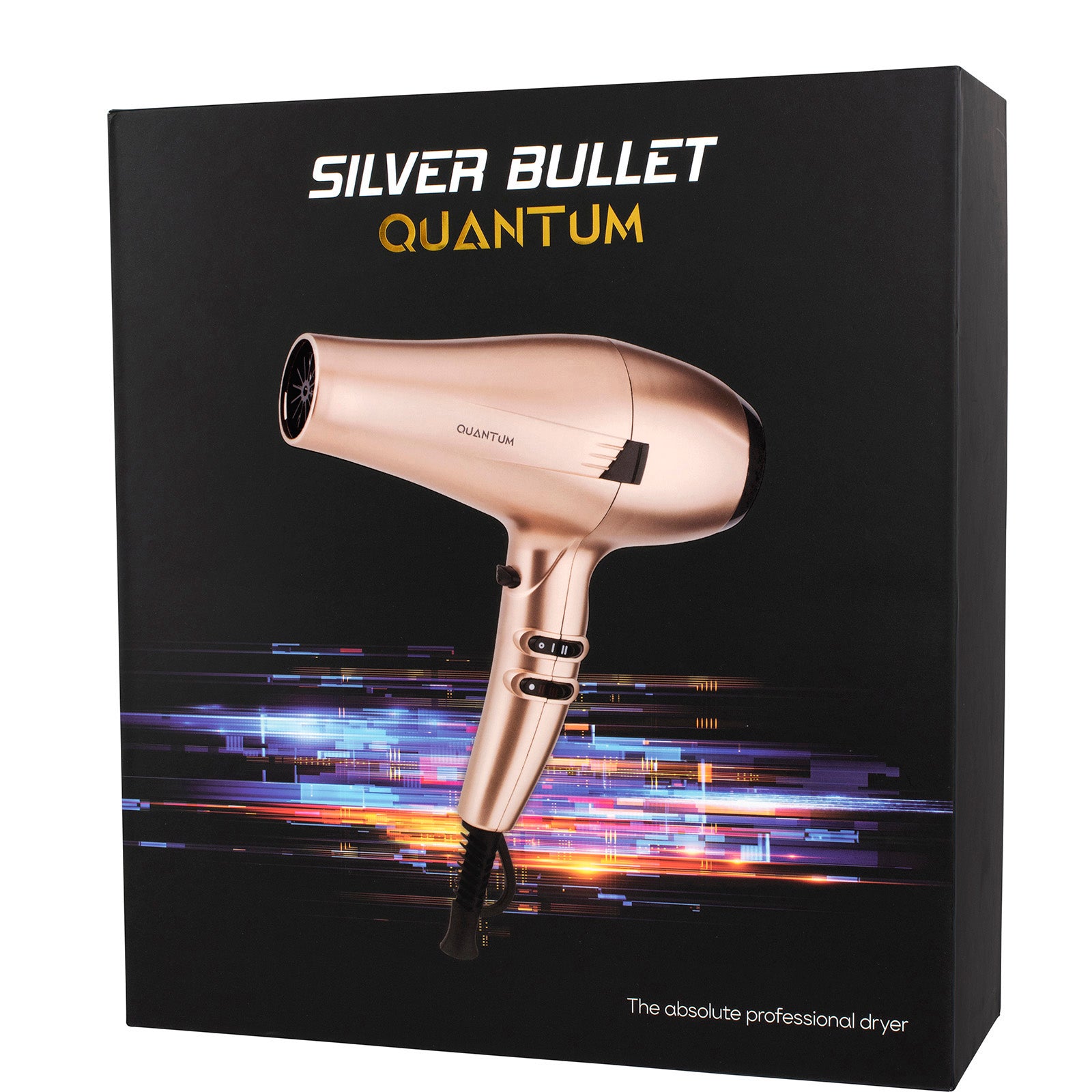 An absolute professional, Quantum delivers an incredible 2300 watts powered by a long-life AC motor, 2 speed/3 heat settings and an indispensable cold shot button. This is the first Silver Bullet hair dryer which includes two concentrator nozzles for precision drying, as well as a diffuser for soft, bouncy curls. Get smoother, sleeker results faster with Quantum. Professional hair drying takes a quantum leap with this power player.