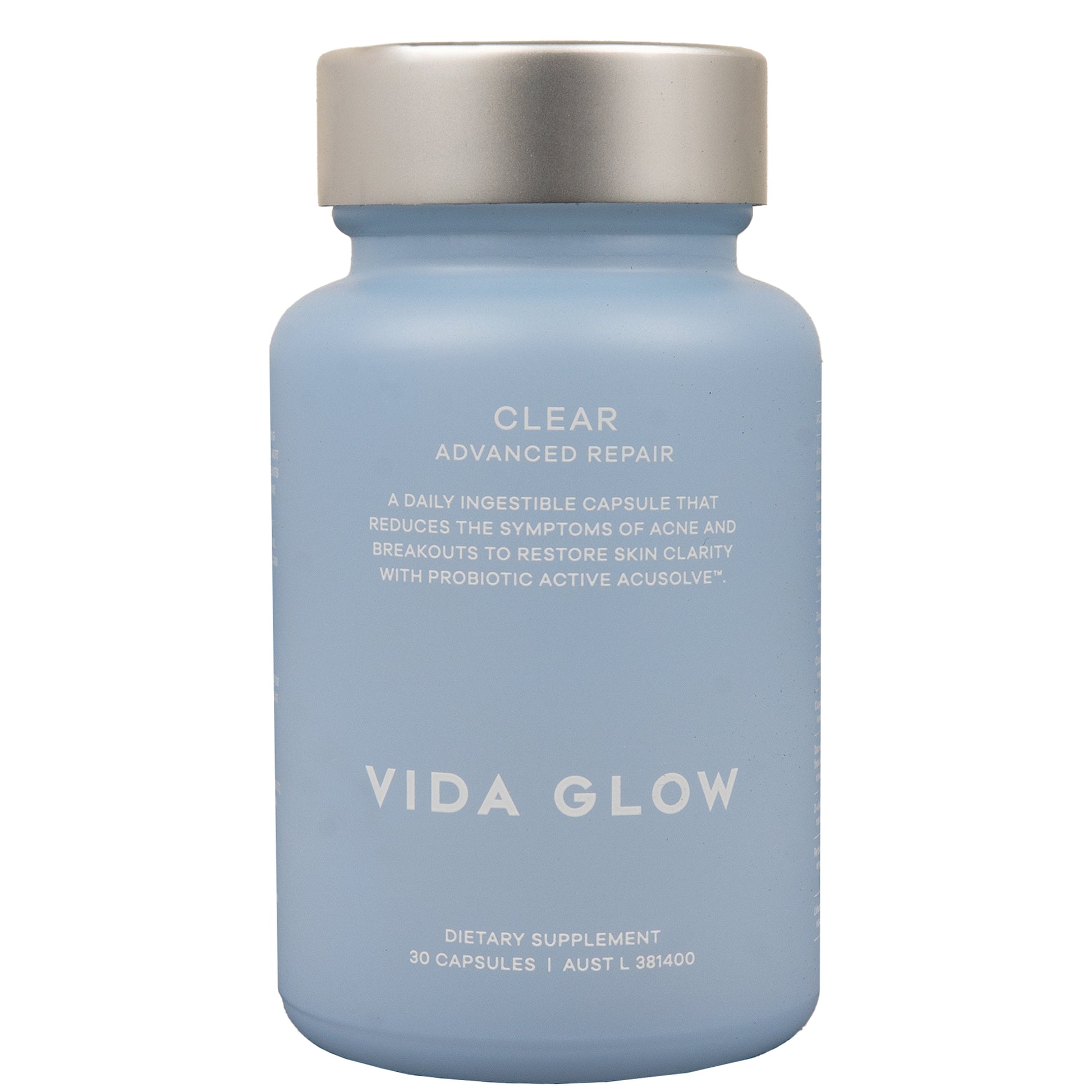 Vida Glow Clear is a once daily vegan capsule that relieves the symptoms of acne, breakouts, blackheads and excess oil for smoother, clearer skin.