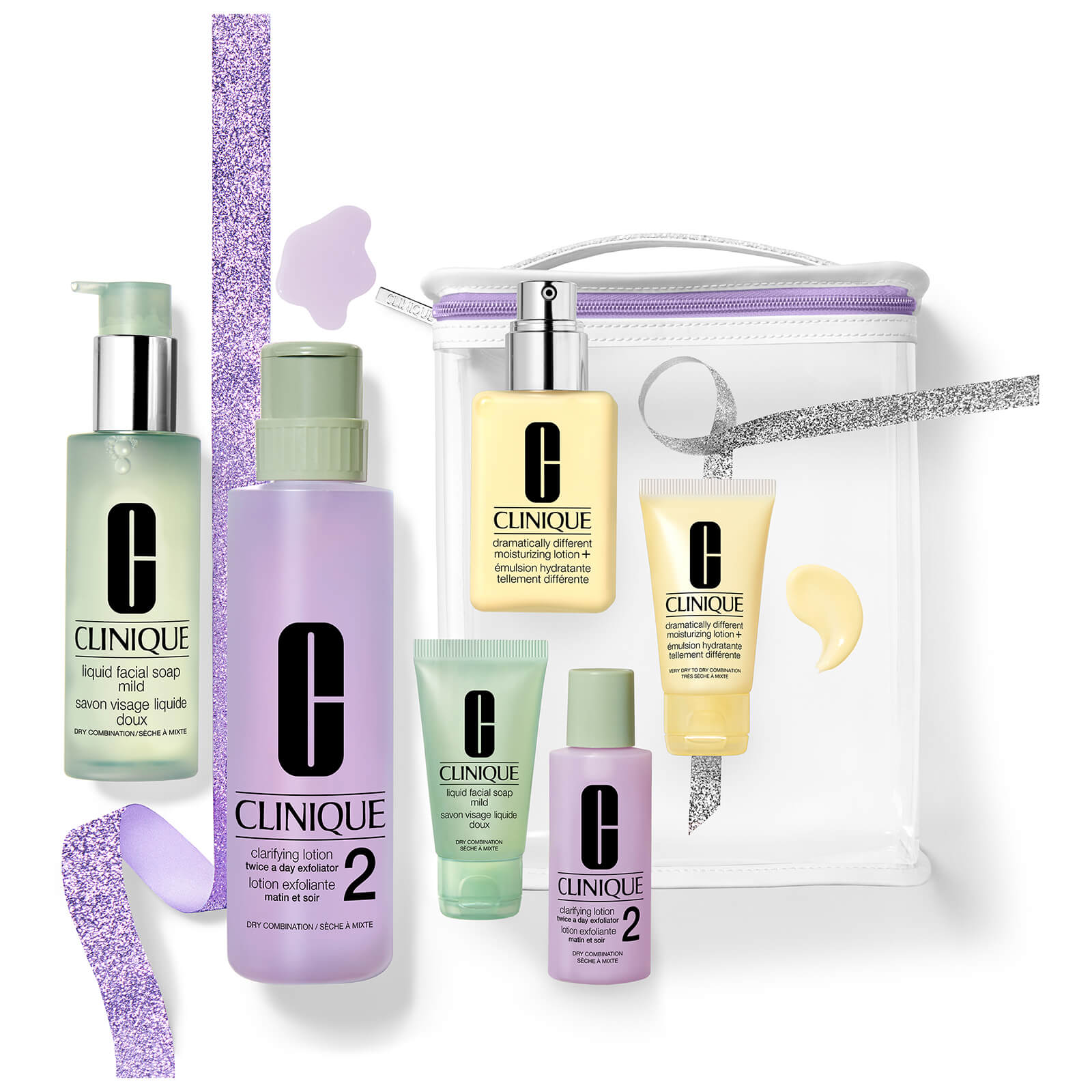 Ultra-hydrating 3-Step skin care—in full and travel sizes, plus a travel-friendly bag, to give drier skin exactly what it needs to be great skin. Liquid Facial Soap cleanses gently, Clarifying Lotion helps clear dulling flakes for smooth, glowing skin and Dramatically Different™ Moisturizing Lotion+ hydrates and strengthens skin’s moisture barrier. (Skin Types: Very Dry to Dry, Dry Combination).