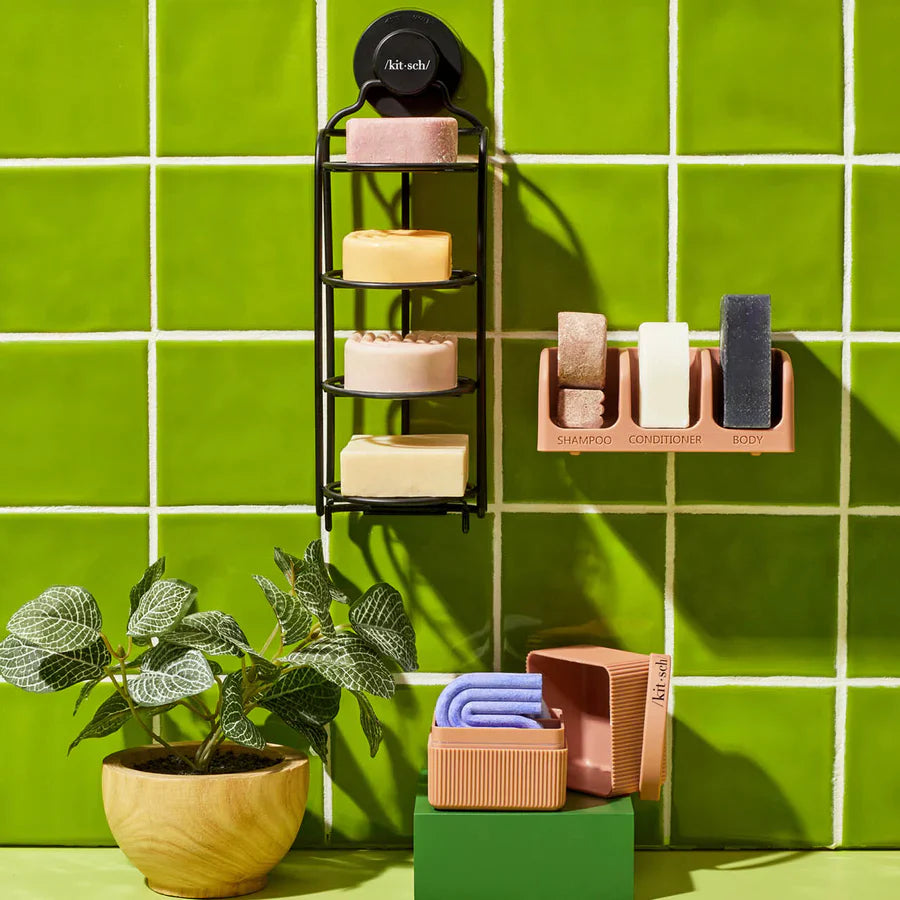 Keep your shampoo bars, conditioner bars, and soaps neat and dry with the Kitsch Self-Draining Bar Holder. Designed to easily accommodate a variety of bar sizes, this versatile holder supports both wall-mounted and free-standing use thanks to its durable legs and secure mounting options.