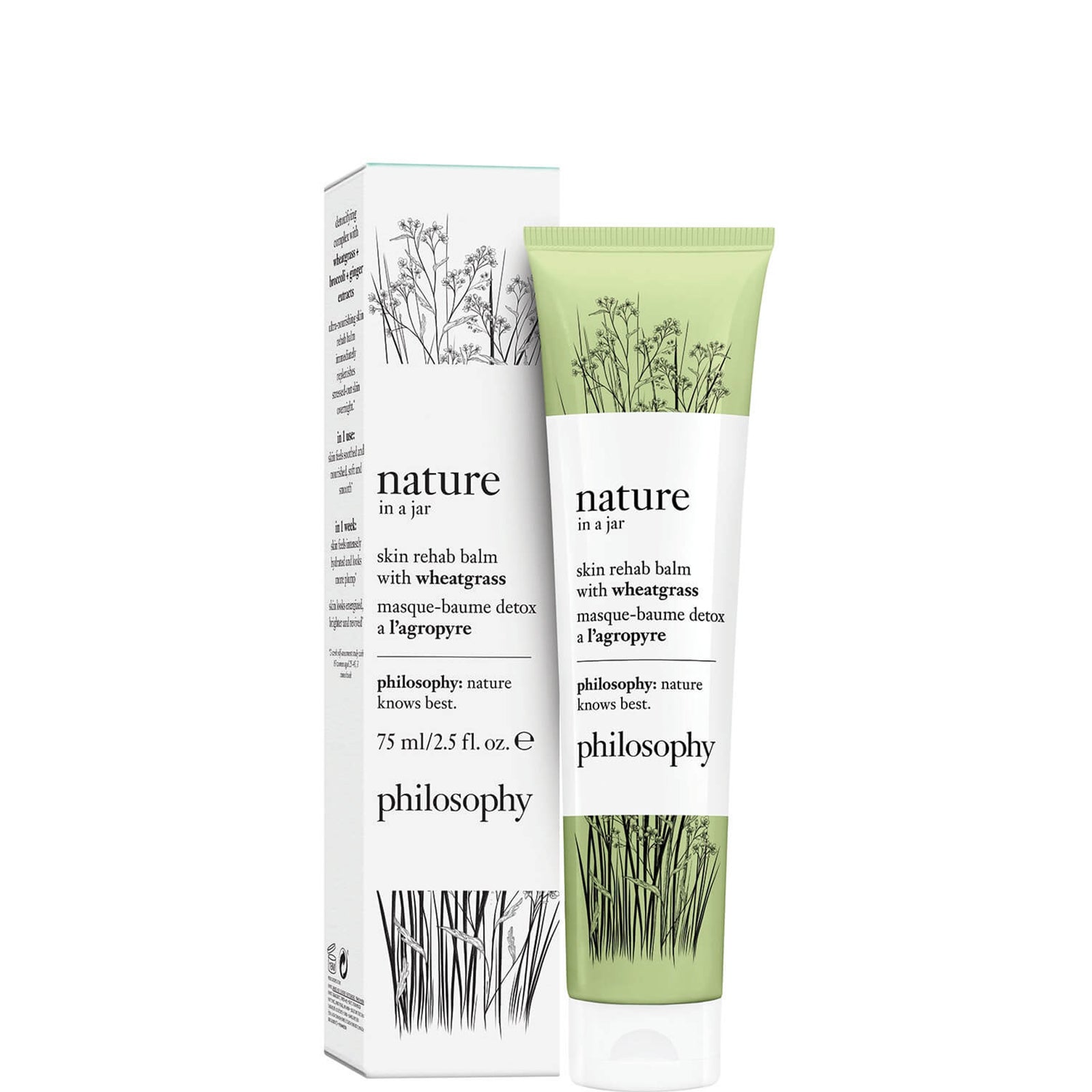 Replenish the look of your complexion, with the philosophy Nature in a Jar Wheatgrass Mask. Lightweight yet sumptuous, the formula is infused with a host of detoxifying components, including Broccoli, Wheatgrass and Ginger extracts.