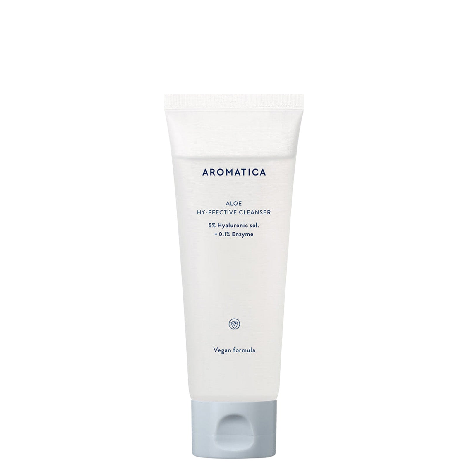 AROMATICA Aloe Hy-ffective Cleanser 5% Hyaluronic sol. +0.1% Enzymecontains organic aloe that will effectively calm and moisturise the skin. The dense but softMoisturizing Micellar Jelly Cleanserresembling Aloe thoroughly washes away makeup and impurities even without foam for refreshed, moisturized skin.