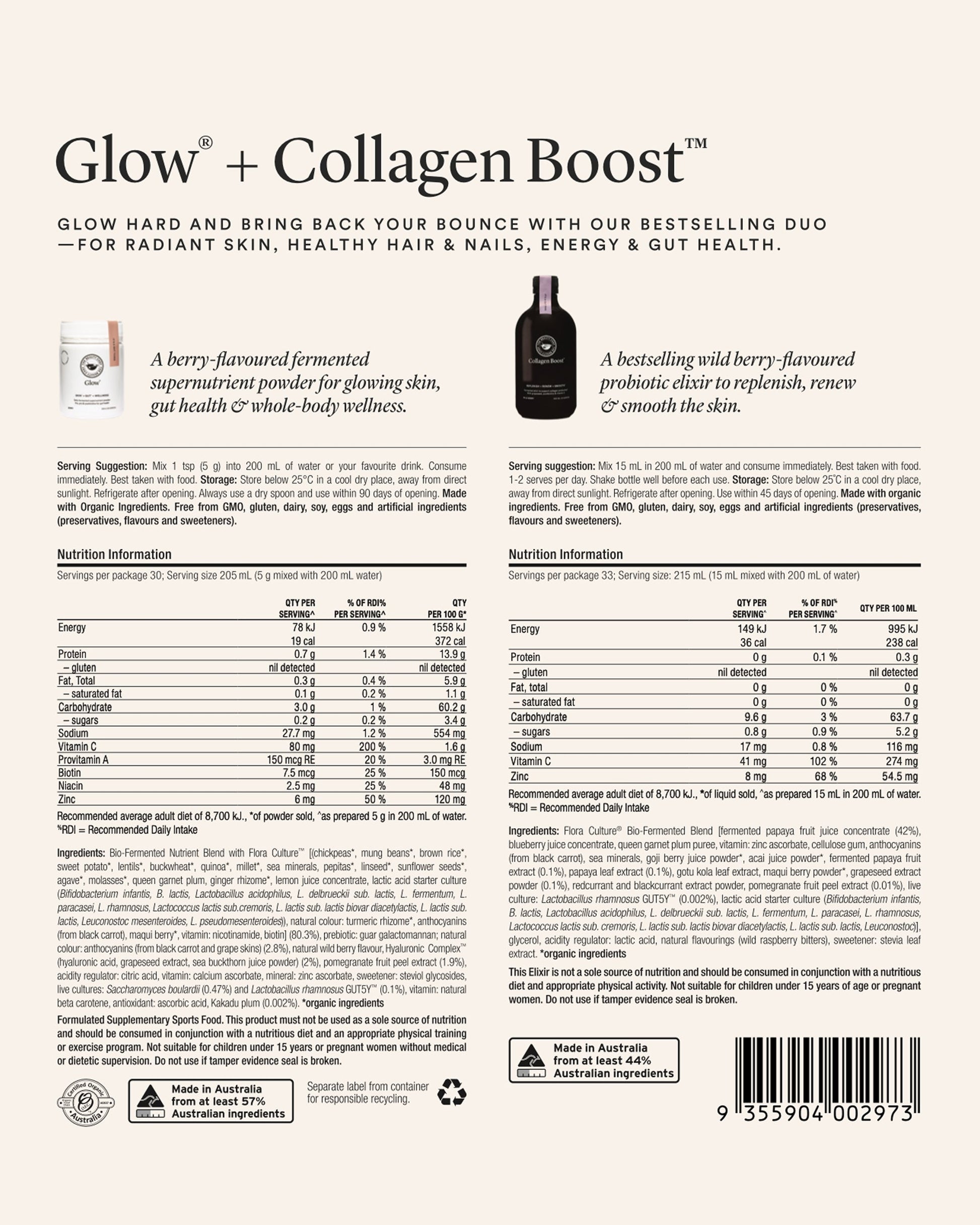 Both Glow® and Collagen Boost™ feature a naturally sweet, berry-rich flavour that blends beautifully together for a delicious, daily ritual.
