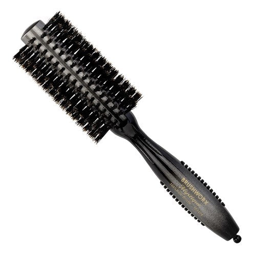 Harness the power of tourmaline to effortlessly tame static, reduce frizz, and boost radiant shine with the Brushworx Mystique Radial Hair Brush Medium. Featuring a tourmaline-coated barrel that emits high levels of negative ions, this brush delivers smoother, silkier, and shinier results with every blow-dry. Designed for controlled styling, it combines the tourmaline barrel with natural boar bristles—ideal for smoothing, straightening, adding volume, and creating natural movement. The boar bristles also help distribute your scalp’s natural oils, leaving hair soft and luxuriously finished. Complete with a rubberised handle for a secure, comfortable grip, this brush is proudly crafted by Brushworx, Australia’s trusted 100% locally owned brush specialist.