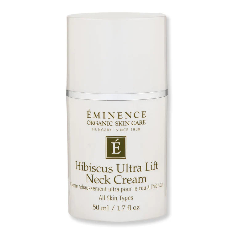 Eminence Organics Hibiscus Ultra Lift Neck Cream Formulated to instantly lift, firm and tighten. This delicate cream suitable for all skin types delivers results in minutes and shows long-lasting improvement over time.