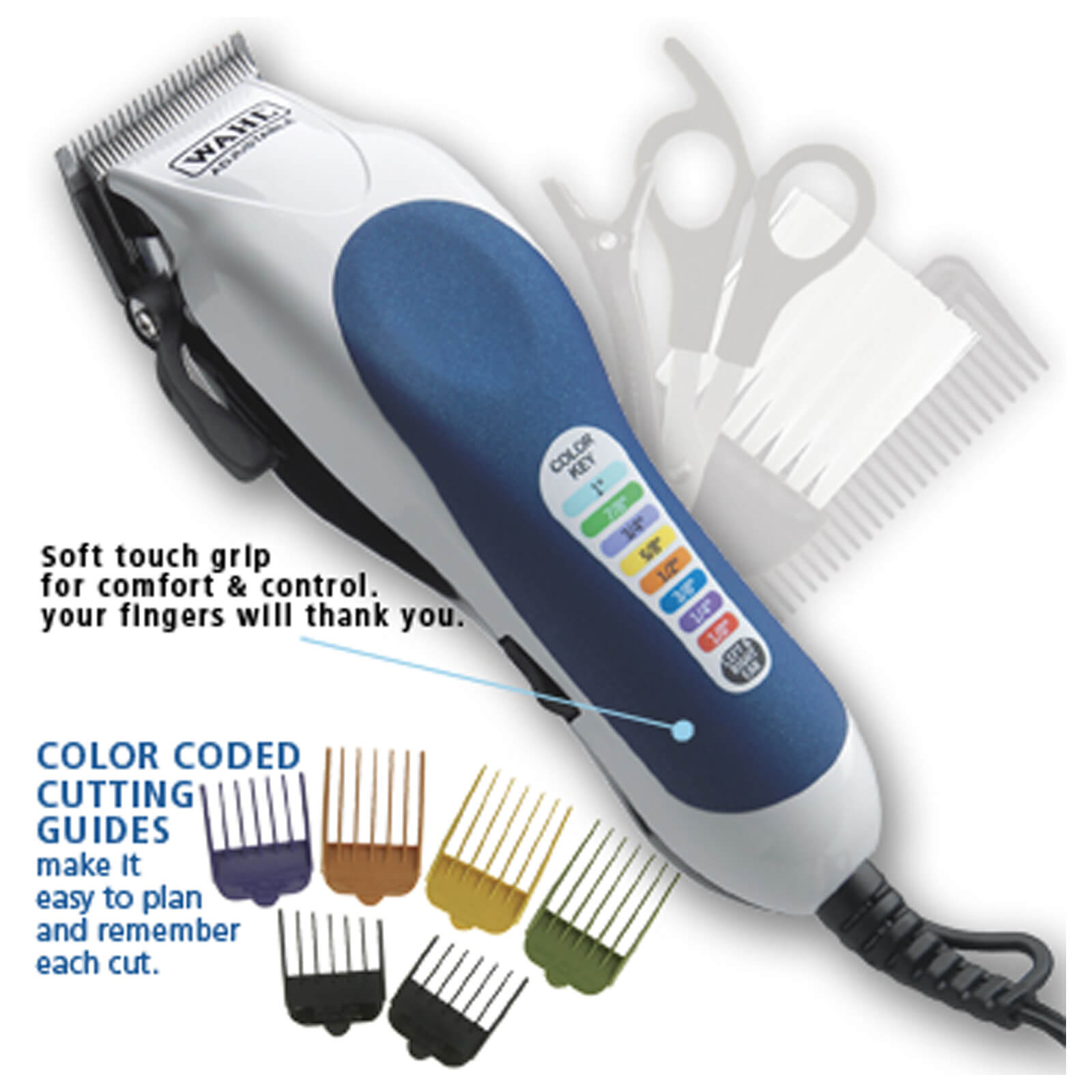 Colour Coded Haircutting Kit. Features multi-cut clipper with adjustable taper control and PowerDrive for excellent proformance. Color key on clipper and corresponding colour coded combs provide quick identification when selecting the guide comb you need. Get it right every time! Includes durable storage case and Wahl exclusive accessories.