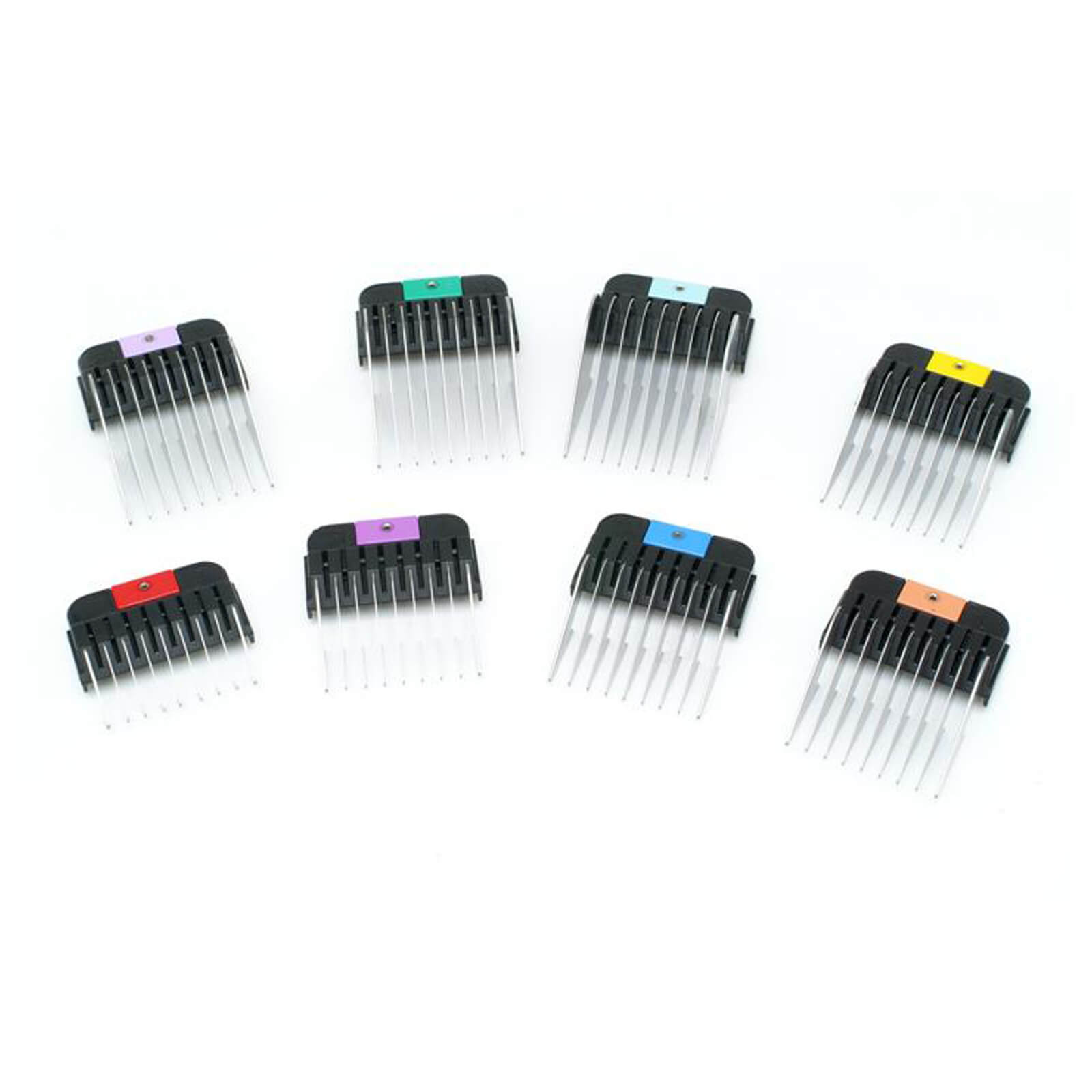 The attachment guide combs are color-coded for easy reference and are available either individually or in one convenient 8-piece kit. For best results, use the attachment guide combs with the Wahl #30 Competition or Ultimate Competition detachable blade. Do not use on #40 blade set of any brand.