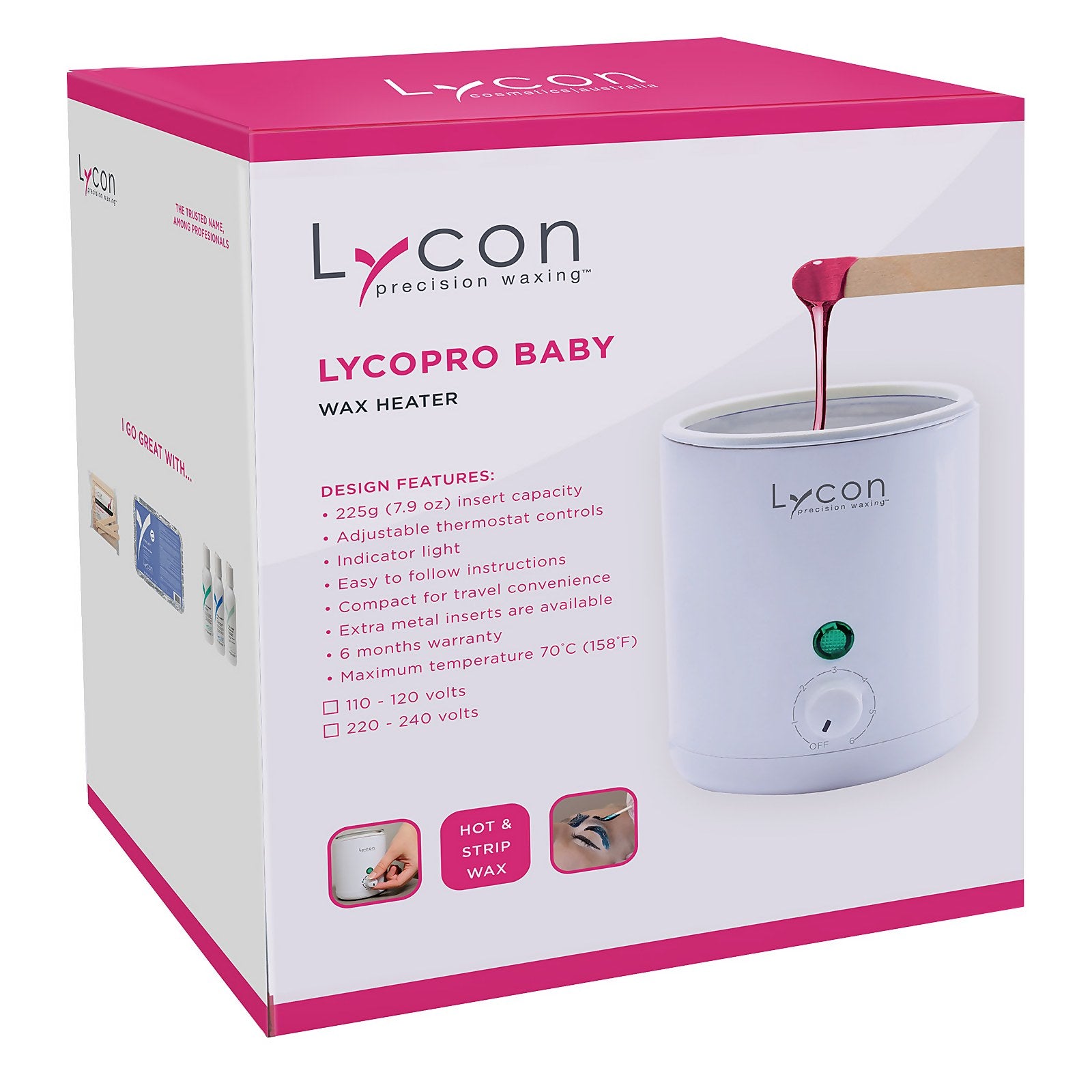 Our LYCOPRO Baby Wax Heater, perfect for small work stations, mobile salons or make up artists. This no fuss 225G wax heater is convenient, compact and ideal for facial waxing including brows, lip and nose. Suitable for both hot and strip wax with removable insert included.