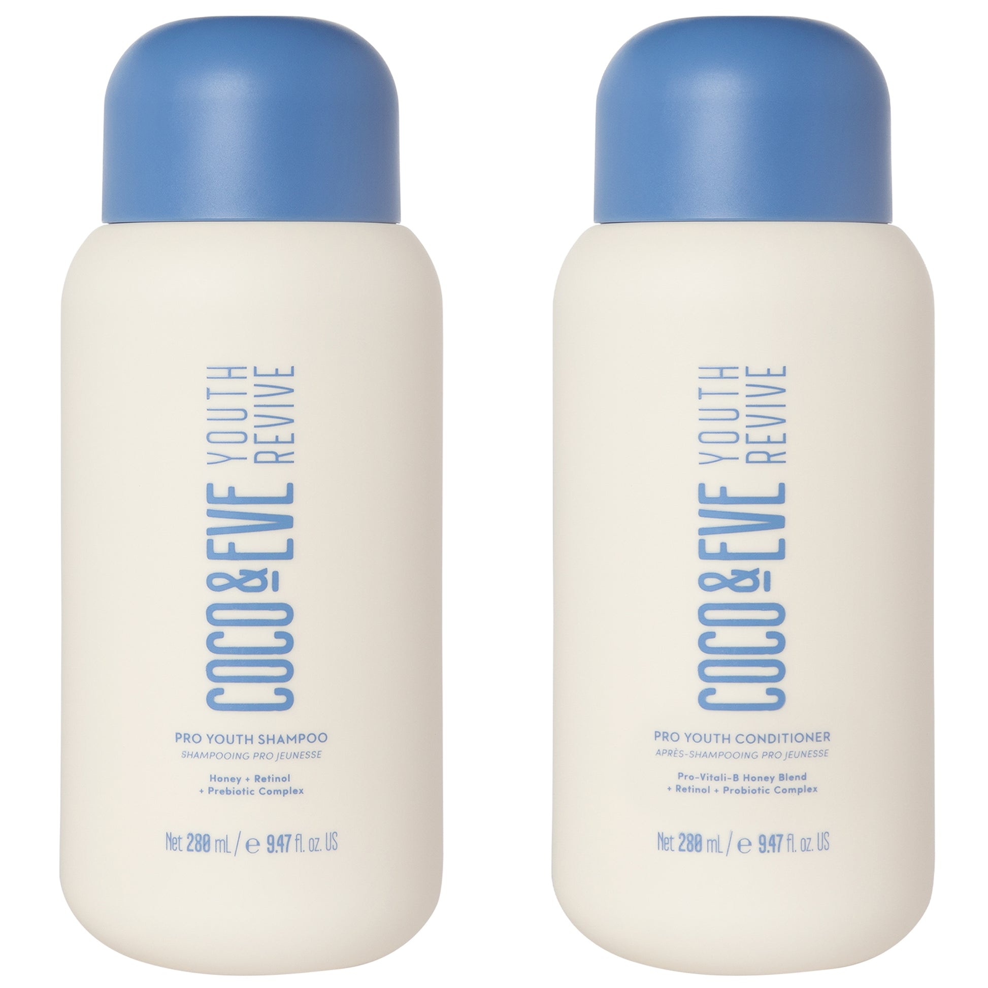 Clinically effective 3D age-defying shampoo and conditioner set that targets the three key signs of aging - loss of shine, strength, and volume. Our hydrating and nourishing formula cleanses, clarifies, and strengthens from root to tip, promoting bouncy, youthful-looking hair with double the shine. Enjoy nourished and revitalized strands with our sustainably sourced honey, retinol, and prebiotic infused formula that preserves color vibrancy while rebalancing the scalp and removing impurities and excess sebum for a healthier hair environment. Restore volume, softness, and strength with our pro-youth formula.