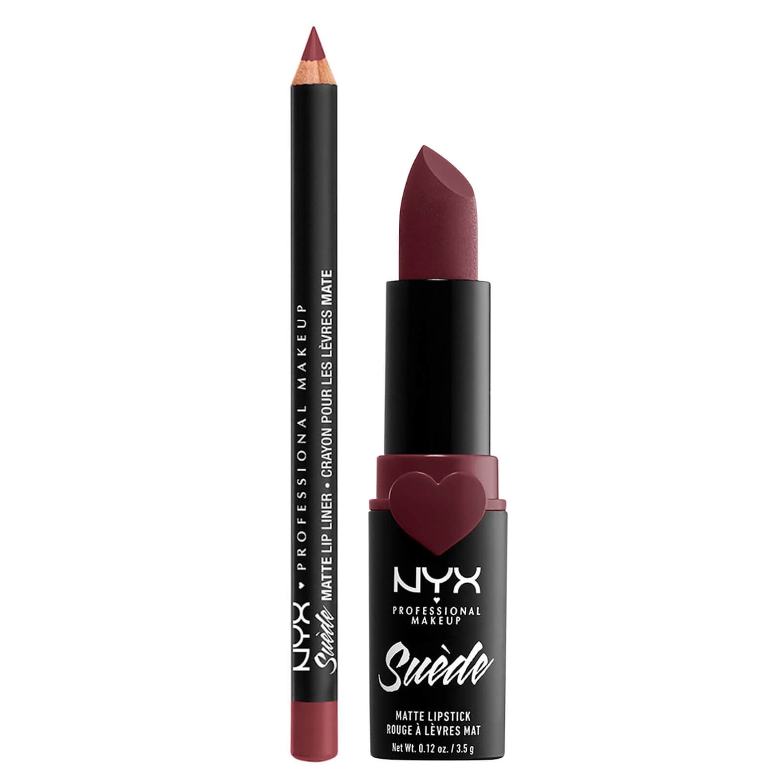 Got a serious crush on NYX Professional Makeup Suede Matte Lip Liner? Then you're about to fall head-over-heels for Suede Matte Lipstick, our best-selling formula inspired by those velvety lip pencils! Featuring an adorable heart-adorned case, this super-soft and lightweight lipstick covers your pout in intensely comfortible powdery-matte color. In pigment rich colors for the matte lips, this lipstick is the perfect yin to our Suede Matte Lip Liner's yang.