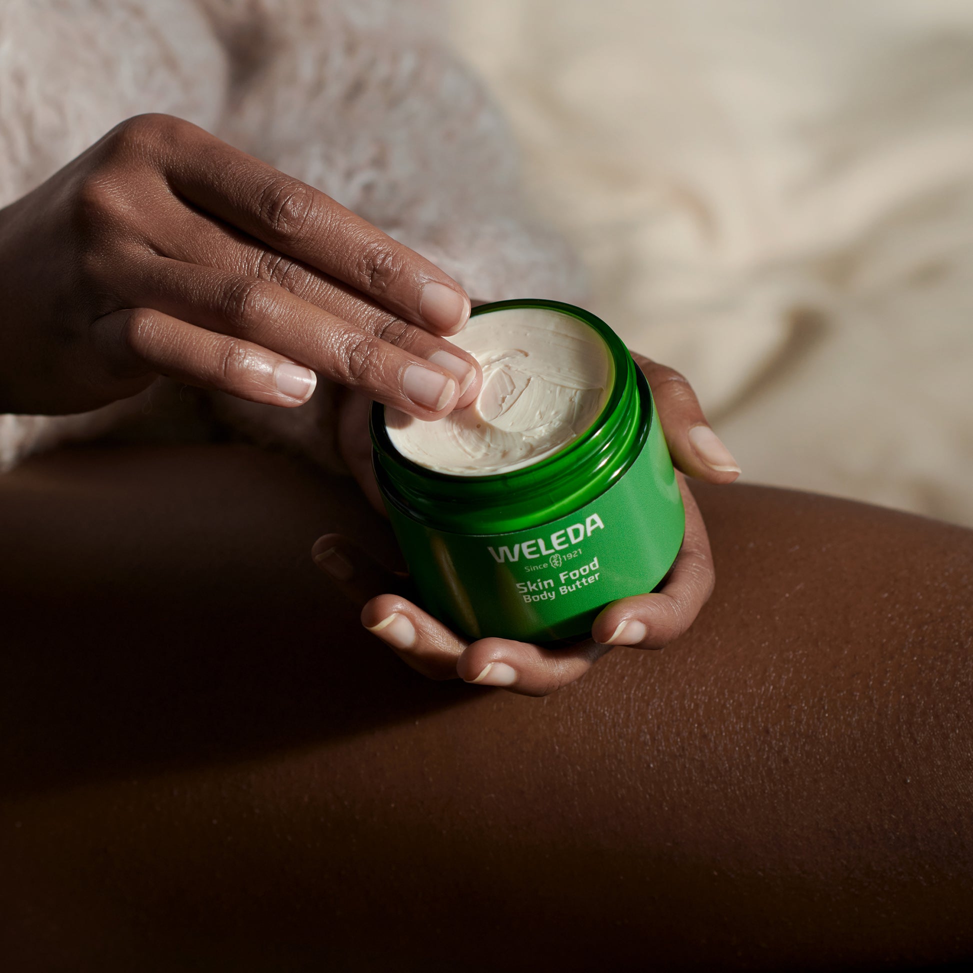 Nourish your skin with the Weleda Skin Food Body Butter, a whipped body cream that strives to quench and comfort dry areas, while bursting with a natural fragrance of sweet orange and aromatic lavender.
