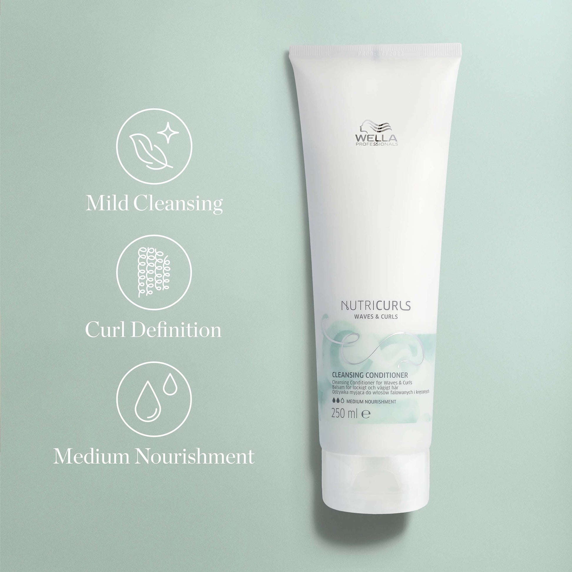 Wella Professionals NUTRICURLS Cleansing Conditioner for Waves & Curls is a low foaming cleansing conditioner that helps define waves & curls. Formulated without silicones. With NOURISH-IN Complex with wheat bran and jojoba oil.