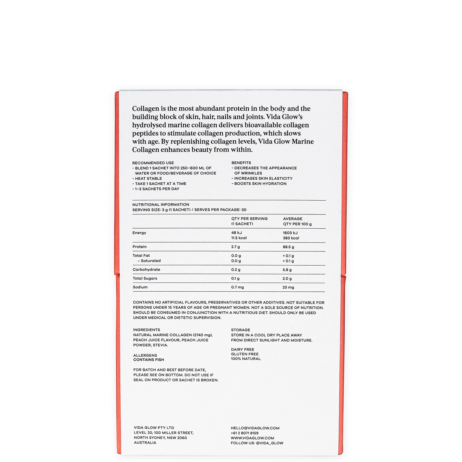 Vida Glow Natural Marine Collagen Supplement - Peach 90g