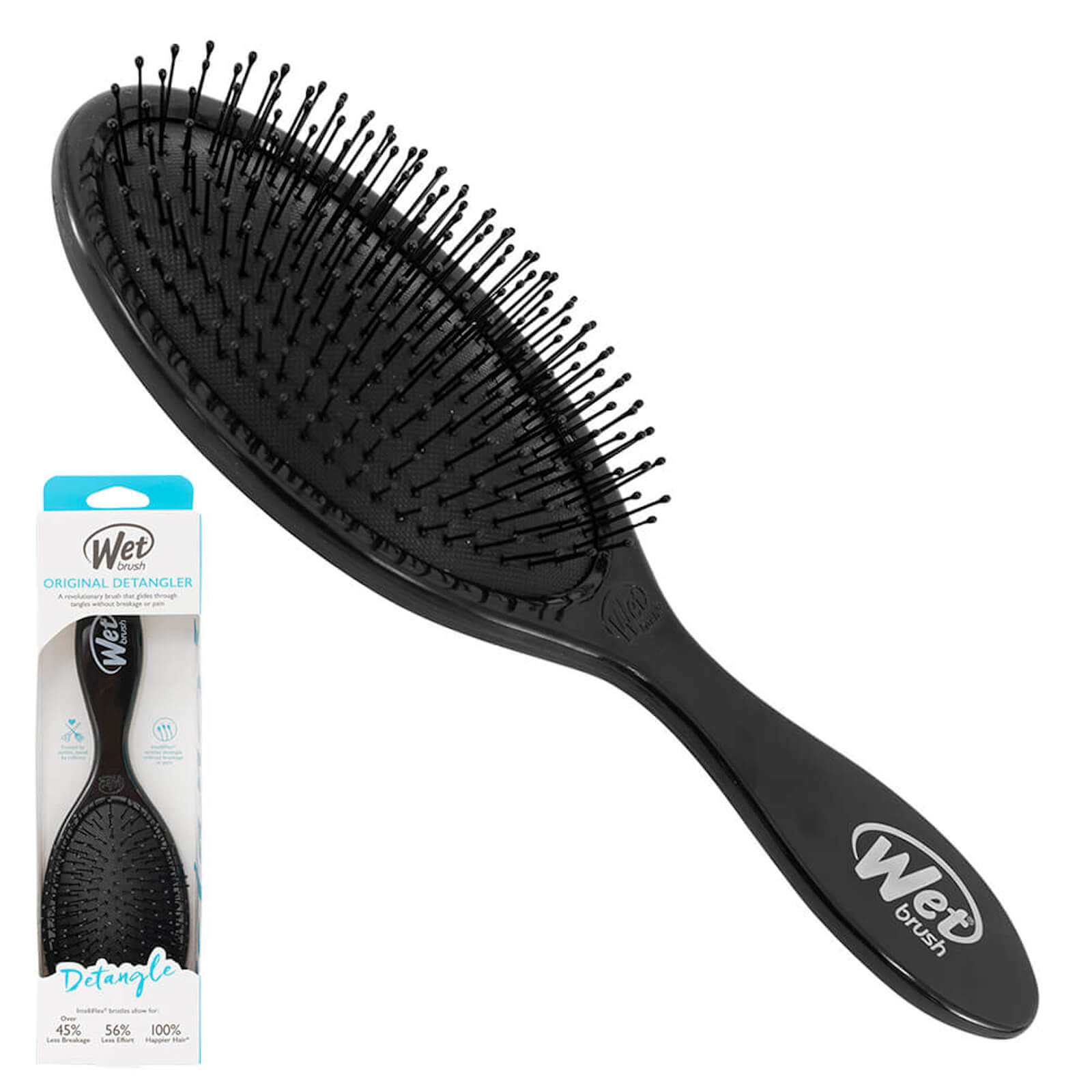 WetBrush Original Detangler Rubberised Hair Brush in Black is ergonomically designed with a grippy, rubberised non-slip handle. Ideal for eliminating post-wash knots quickly, and for smoothing dry hair quickly, gently and easily, as well as reinvigorating your scalp. The secret to happy, healthy looking hair and scalp!